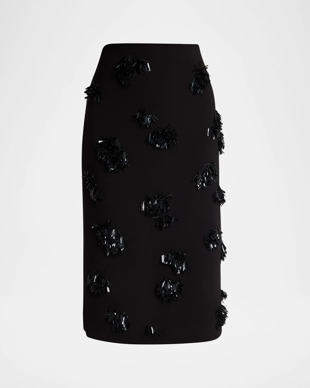 Designed in compact crepe, the "Moira" midi skirt by Proenza Schouler is embellished with tonal sequins and beads for a glamorous look. High rise Pencil silhouette Hem falls below the knee Center back zip Polyester/polyurethane/virgin wool Lining: Lycra® spandex/silk Professional cleaning recommended Imported
