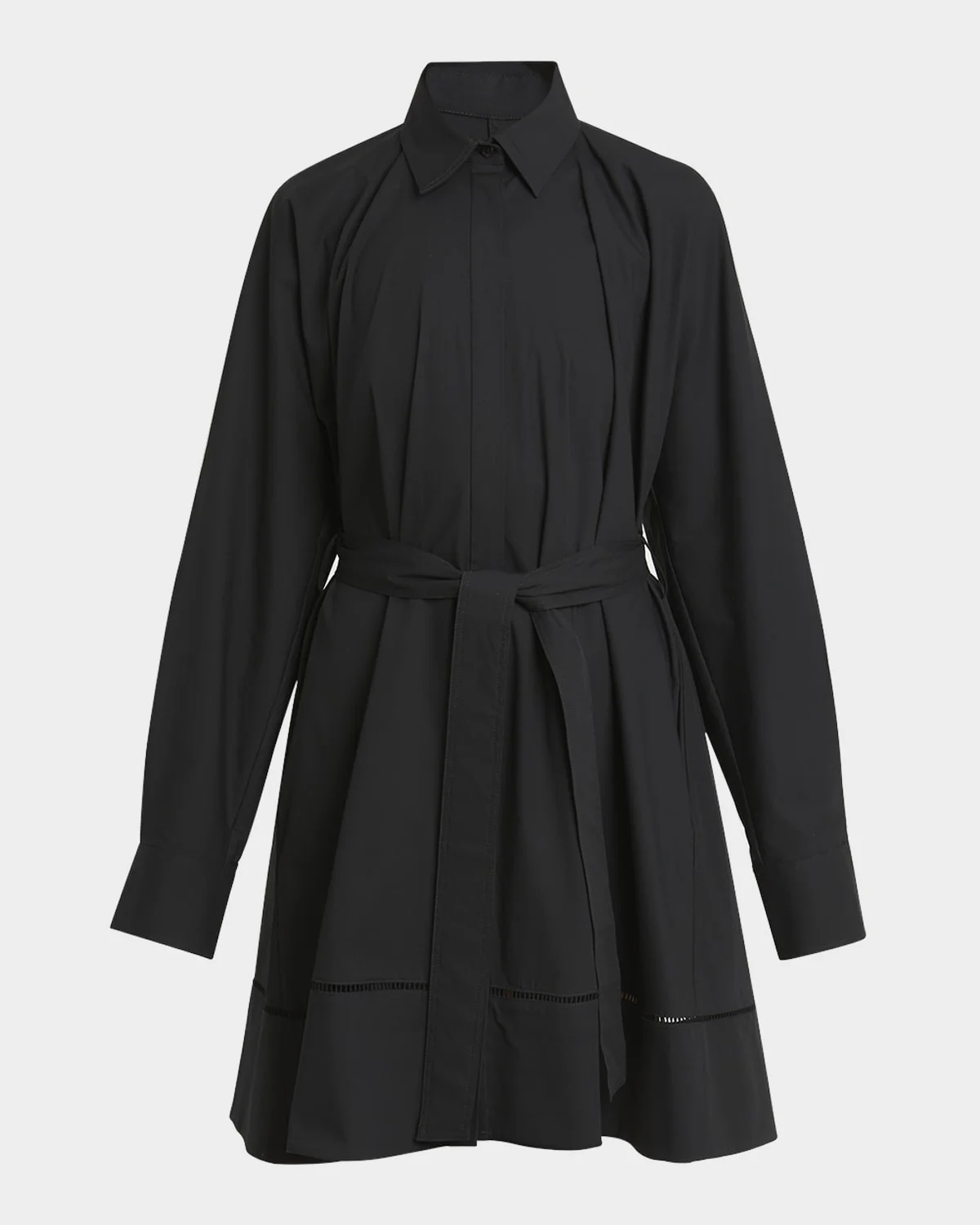 - Proenza Schouler "Sammy" dress crafted from eco cotton poplin, accented with delicate ladder stitching - Spread collar; concealed button closure - Long sleeves; button cuffs - Self-tie waist - Hem hits around the knee - A-line silhouette - Button closure - Cotton/elastane/polyester - Dry clean - Made in Portugal