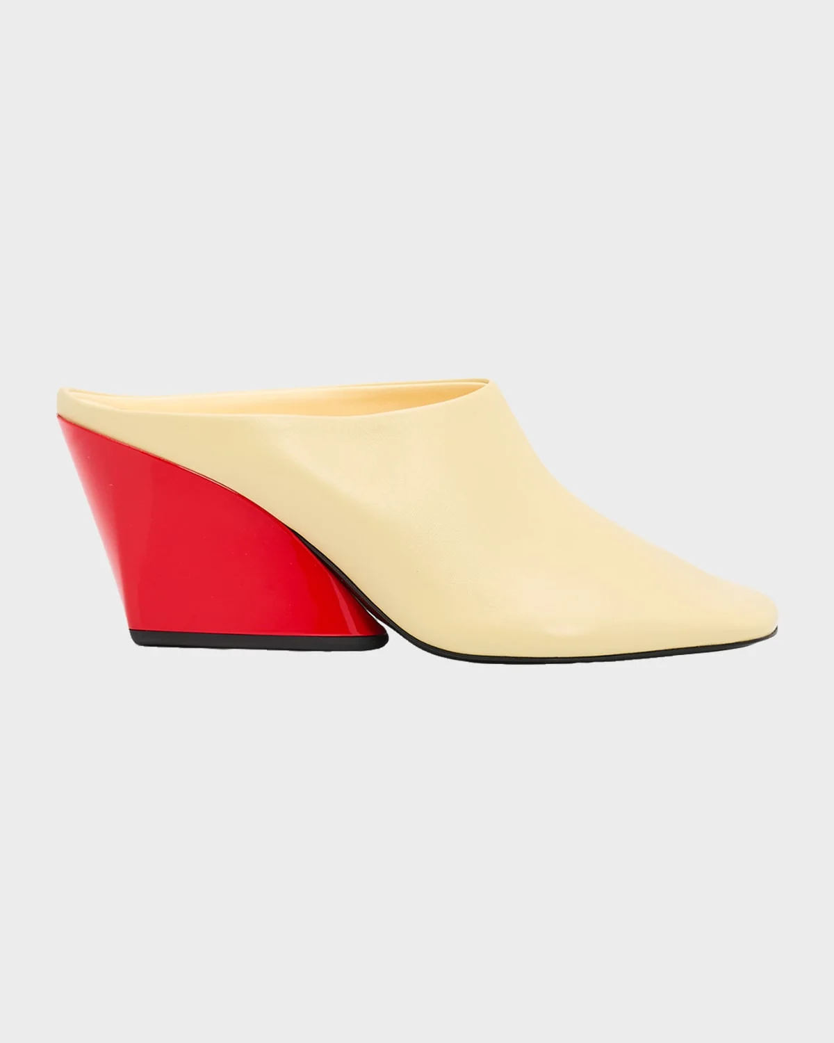 Crafted from calfskin leather, these Proenza Schouler mules feature a slanted silhouette & nbsp; 2.75 in / 70 mm contrasting covered wedge heel Square toe Slip-on style Padded leather footbed & nbsp; Leather outsole Made in Italy