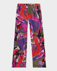 Crafted from woven nylon with a waterrepellent finish, these cargo pants by Pucci feature a vibrant Orchidee print for a bold statement. Midrise; sits high on the hip Cargo pockets Wide legs Full length Button/zip fly; belt loops Nylon/polyamide Lining: Cotton/polyester Dry clean only Made in Italy