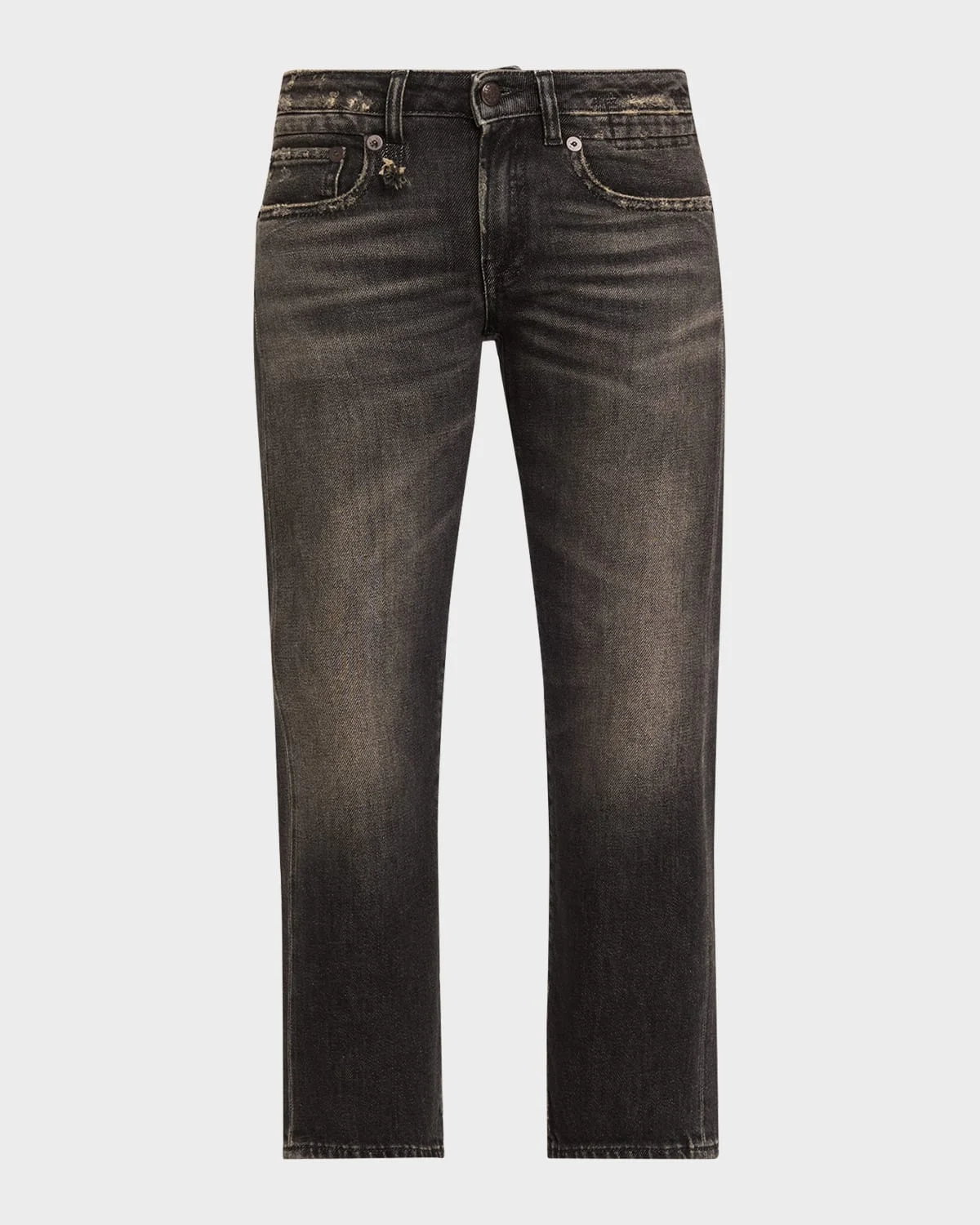 R13 "Boy Straight" jeans in distressed stretchdenim Lowrise; sits at the hip Fivepocket style Ankle length Button/zip fly; belt loops Cotton/elastane Machine wash inside out Made in Italy