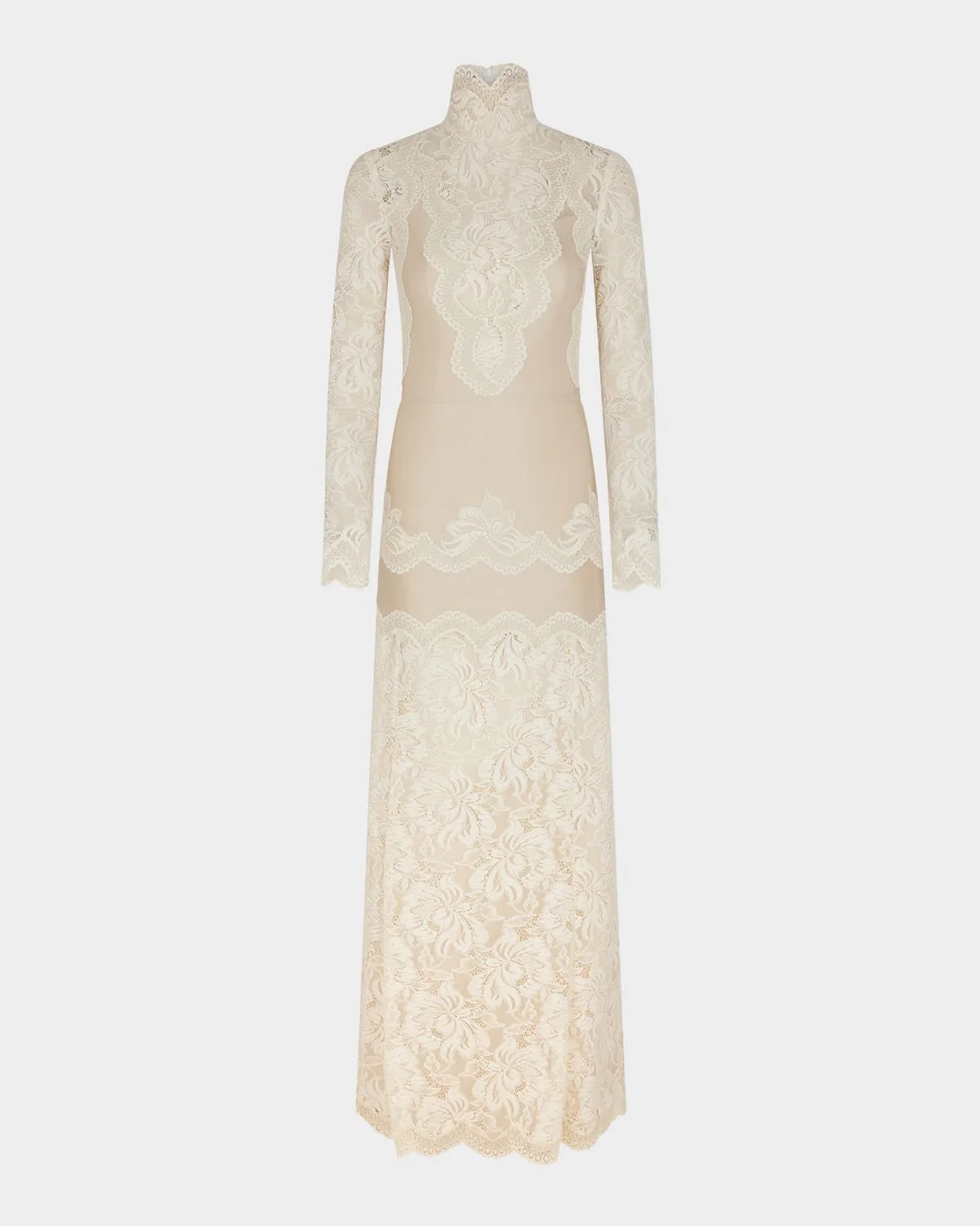 Lace Turtleneck Long-Sleeve Illusion Maxi Dress