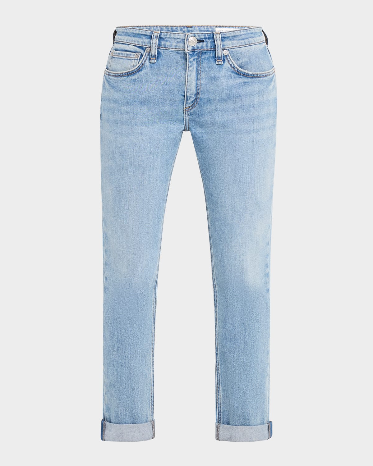 - Rag & Bone "Dre" boyfriend jeans featuring a cuffed hem in light-wash denim - Approx. 8.8" rise; 30" inseam - Low-rise; sits at the hip - Five-pocket style - Slim fit - Ankle length - Button/zip fly; belt loops - Cotton/spandex - Machine wash cold - Imported