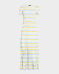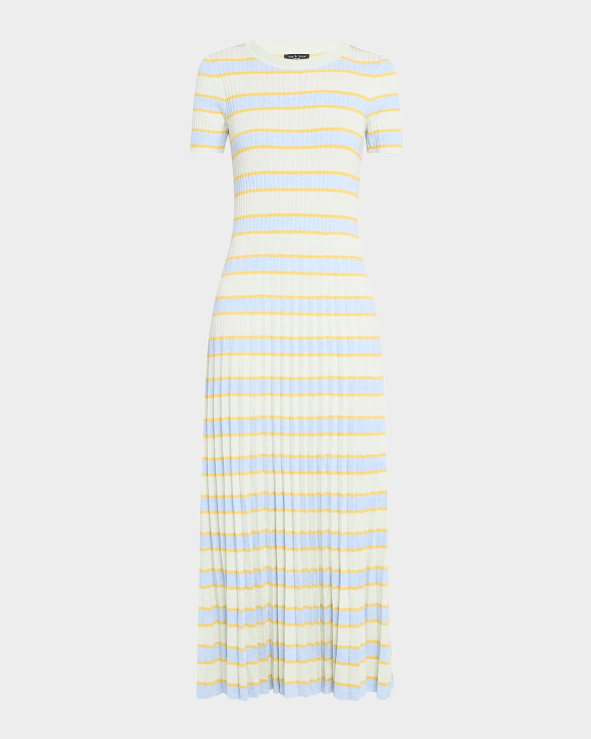 Eloise Striped Rib-Knit Pleated Midi Dress