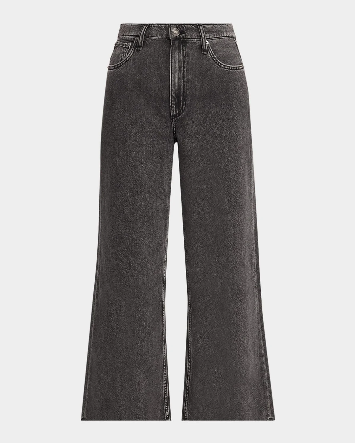 - Rag & Bone "Featherweight Andi" jeans in faded black light-weight denim - High rise - Five-pocket style - Wide legs - Ankle length - Button/zip fly; belt loops - Viscose/cotton/lyocell - Imported