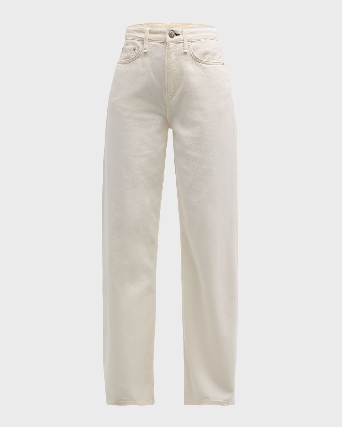 Rag amp; Bone "Featherweight Logan" wideleg jeans crafted from our featherweight denim that's supremely soft and super light, with an easy drape. Feels airy amp; effortless. Approx. 31.5" inseam Midrise; sits high on the hip Fivepocket style Relaxed fit Full length Button/zip fly; belt loops Cotton/lyocell Machine wash Imported Size Note: Item runs large, consider ordering a size down. Model height: 5'10"/177cm.