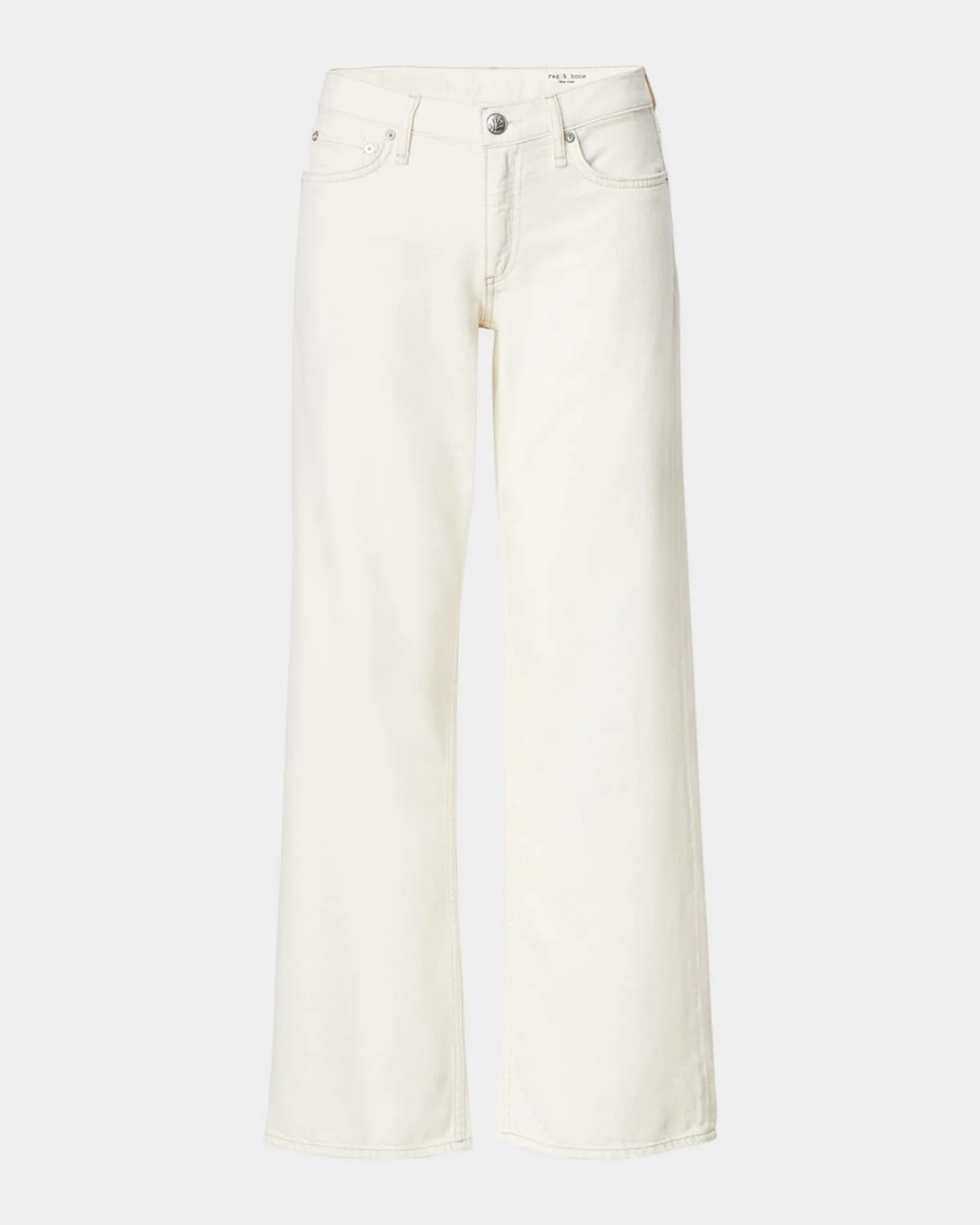 Rag amp; Bone "Featherweight Saige" jeans are crafted from our featherweight denim that's supremely soft and super light, with an easy drape. Feels airy amp; effortless. Approx. 9.3" rise; 30" inseam Lowrise; sits at the hip Fivepocket style Relaxed, straight legs Ankle length Button/zip fly; belt loops Cotton/lyocell Machine wash cold, inside out Imported