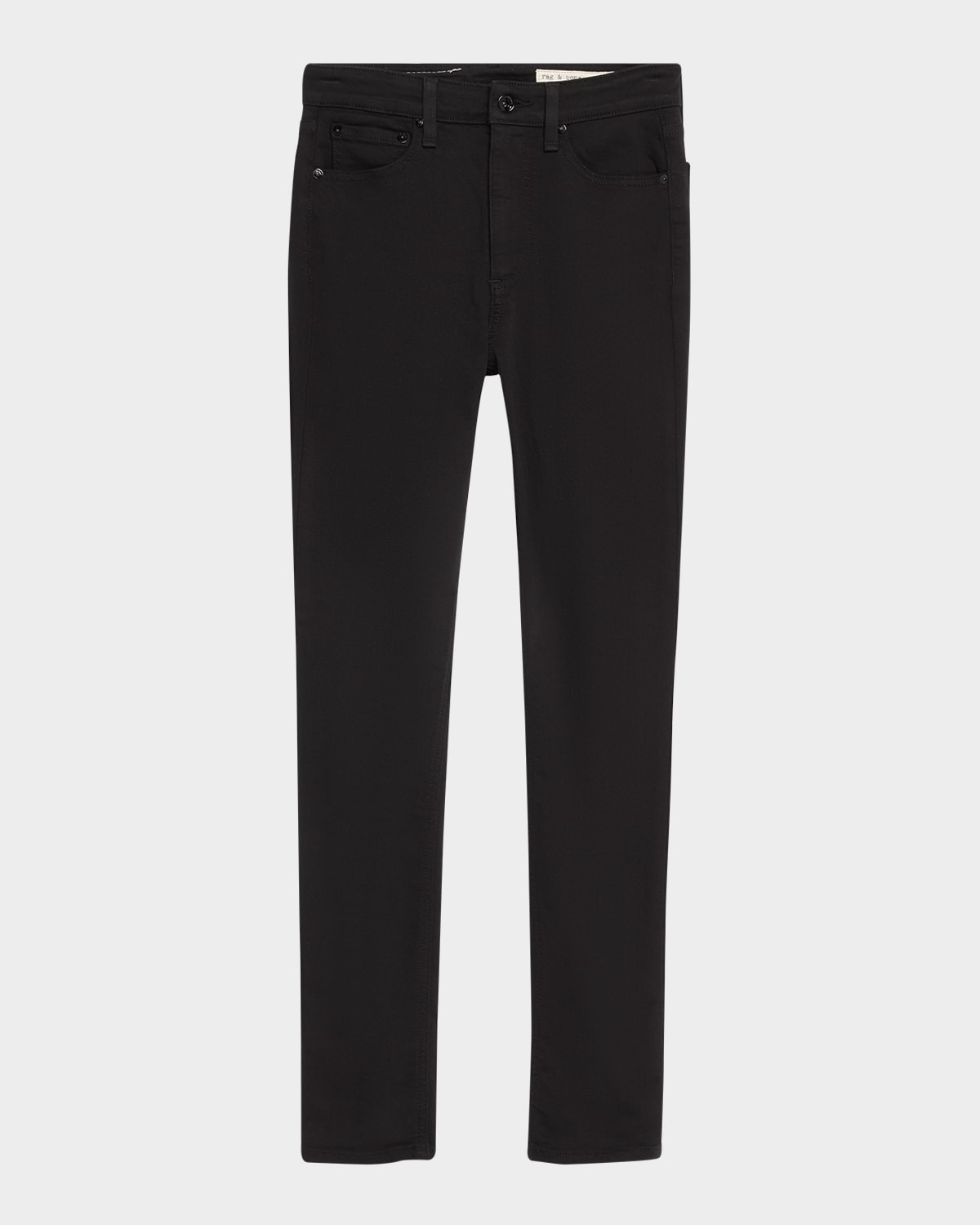 Rag amp; Bone "Flexi Nina" skinny jeans in black lightweight denim Approx. 30" inseam High rise Fivepocket style Skinny fit Full length Button/zip fly; belt loops Viscose/cotton/Tencel® lyocell Machine wash Imported