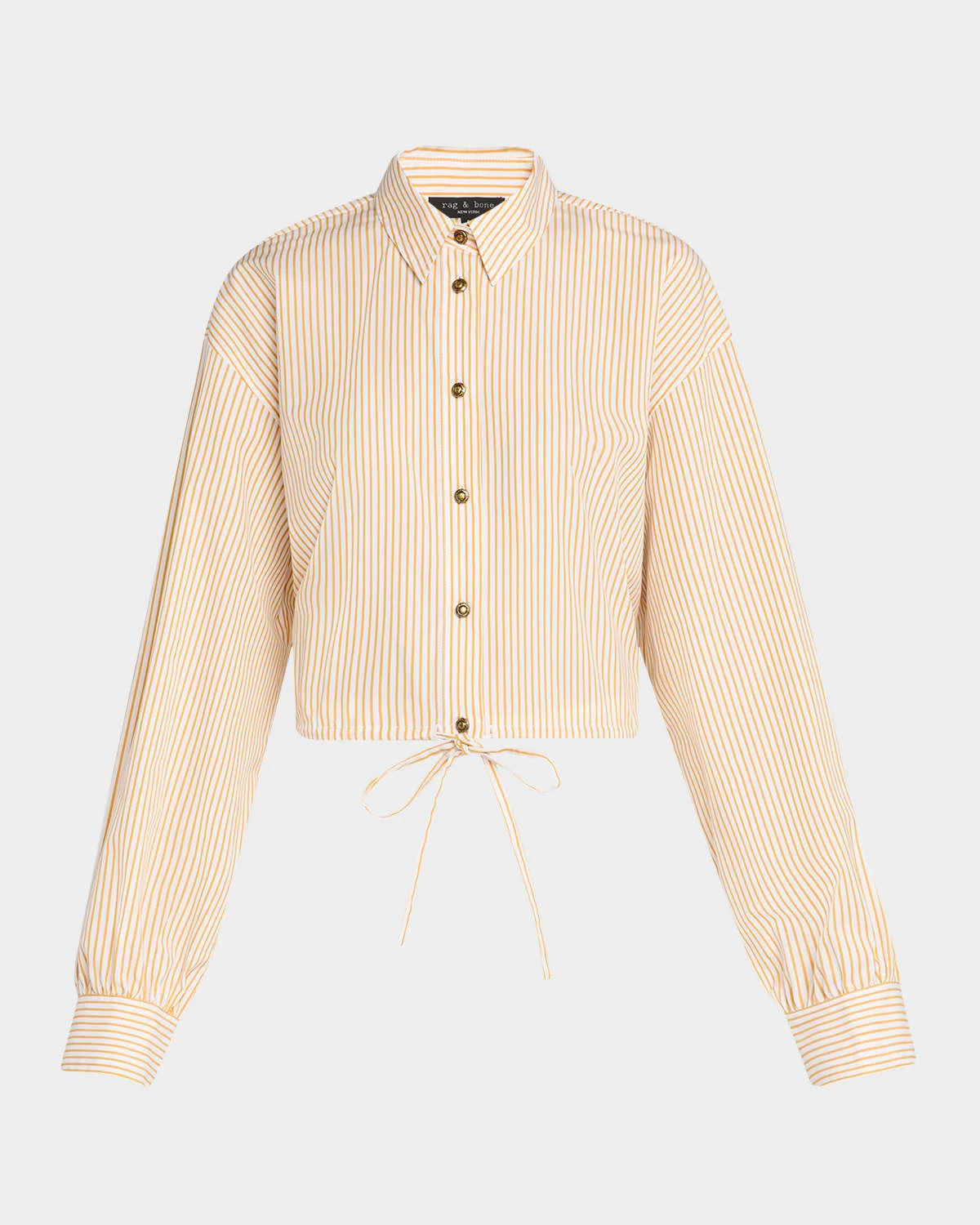 - Rag & Bone "Georgie" pinstripe shirt featuring a drawstring hem - Point collar - Dropped shoulders - Long sleeves with button cuffs - Relaxed fit - Button-front - Cotton - Machine wash cold - Imported