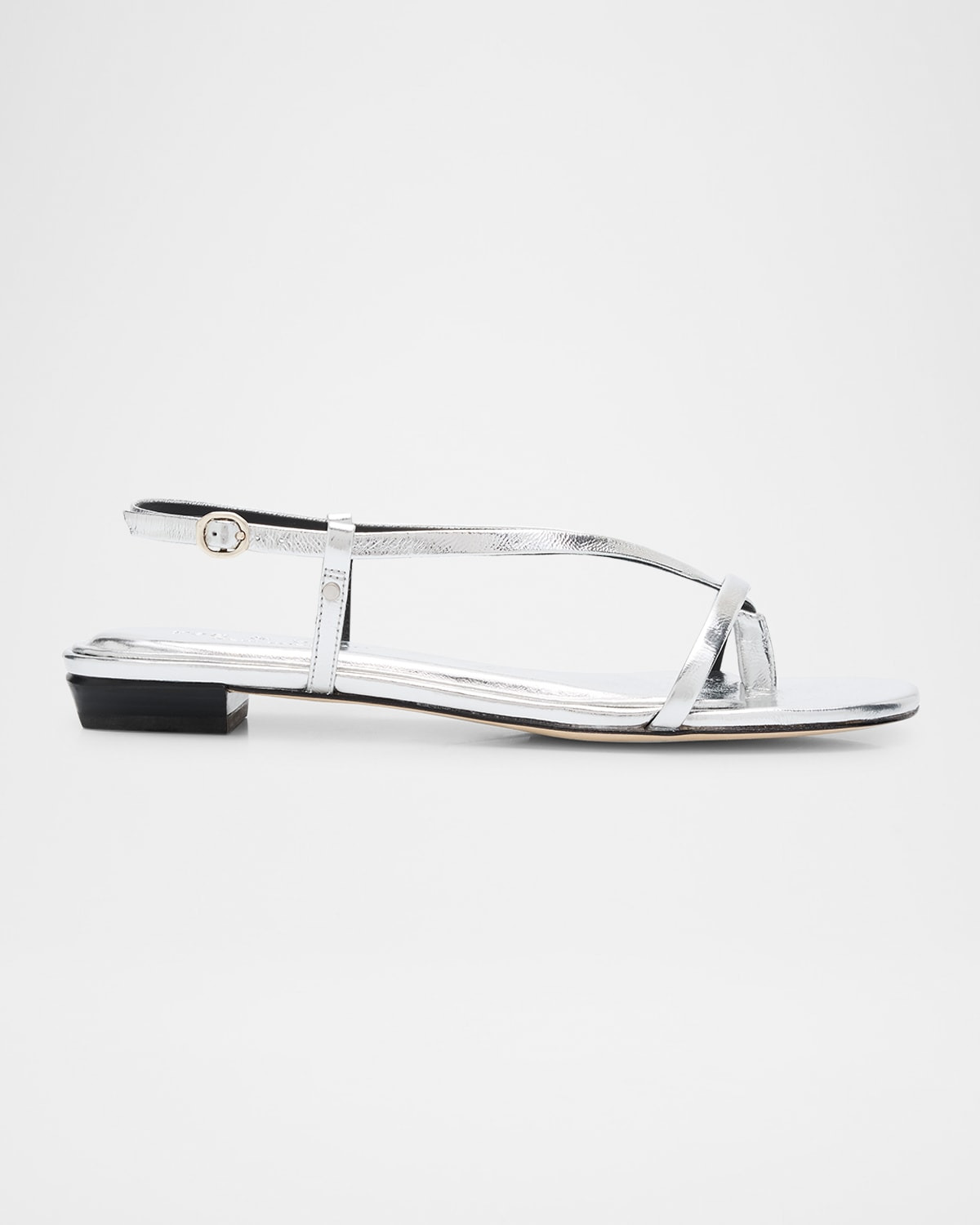 - Rag & Bone "Giselle" calf leather summer sandals - 0.75 in / 20 mm flat heel - Thong strap - Anchored, adjustable slingback strap - Ortholite footbed - Leather outsole - Lining: Leather - Leather method dry cleaning - Imported