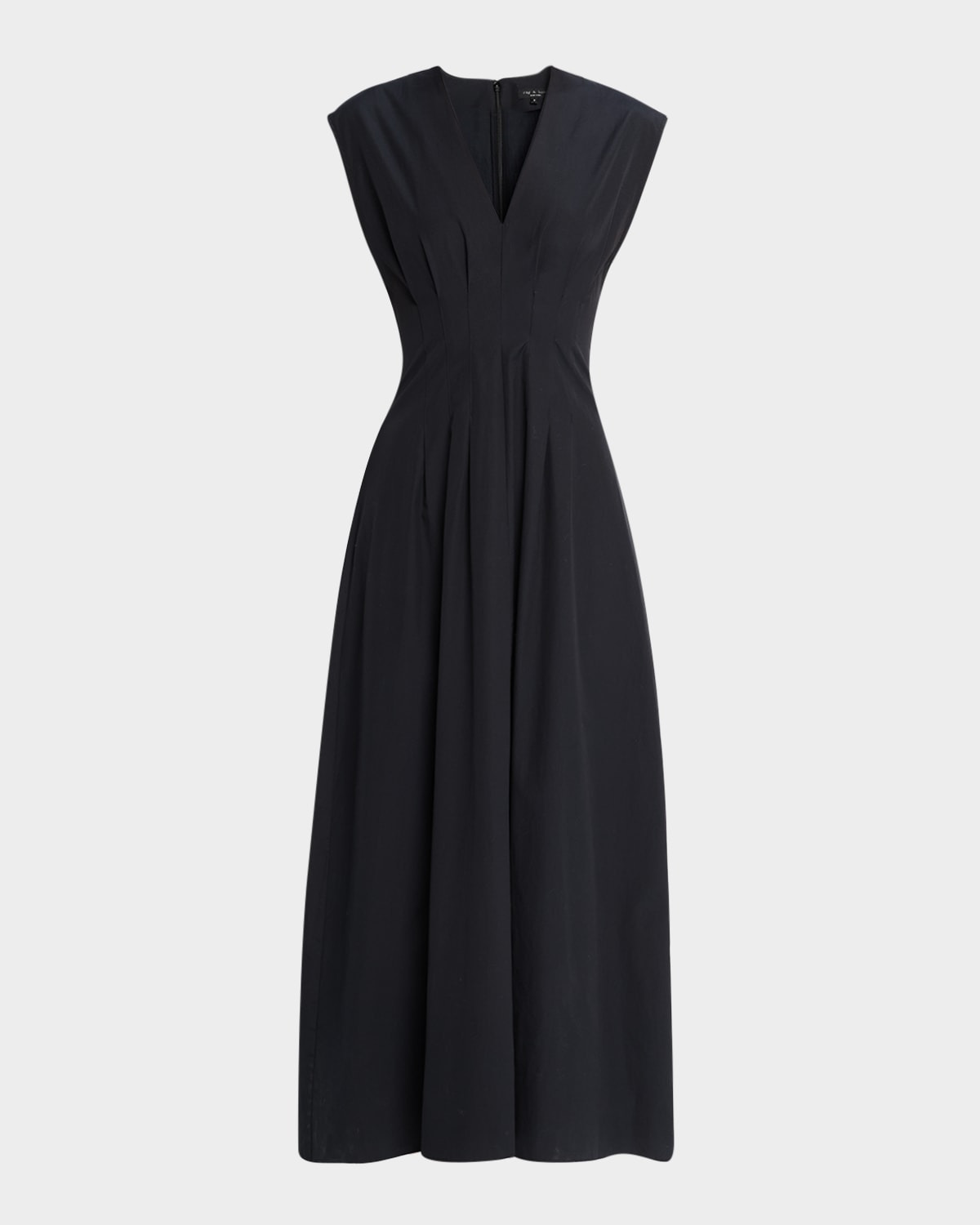 - Rag & Bone "Ines" crisp cotton poplin dress featuring a pintuck waist - V neckline - Sleeveless - A-line silhouette - Full length - Slipover style - Cotton - Machine wash warm - Imported