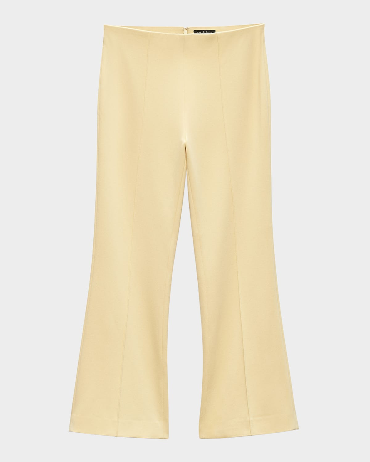 - Rag & Bone "Irina" kick-flare pants featuring a pintuck front - Mid-rise; sits high on the hip - Elastic waistband - Fitted through the hip and thigh - Cropped length - Invisible back zip - Viscose/nylon/polyamide/elastane - Machine wash cold - Imported