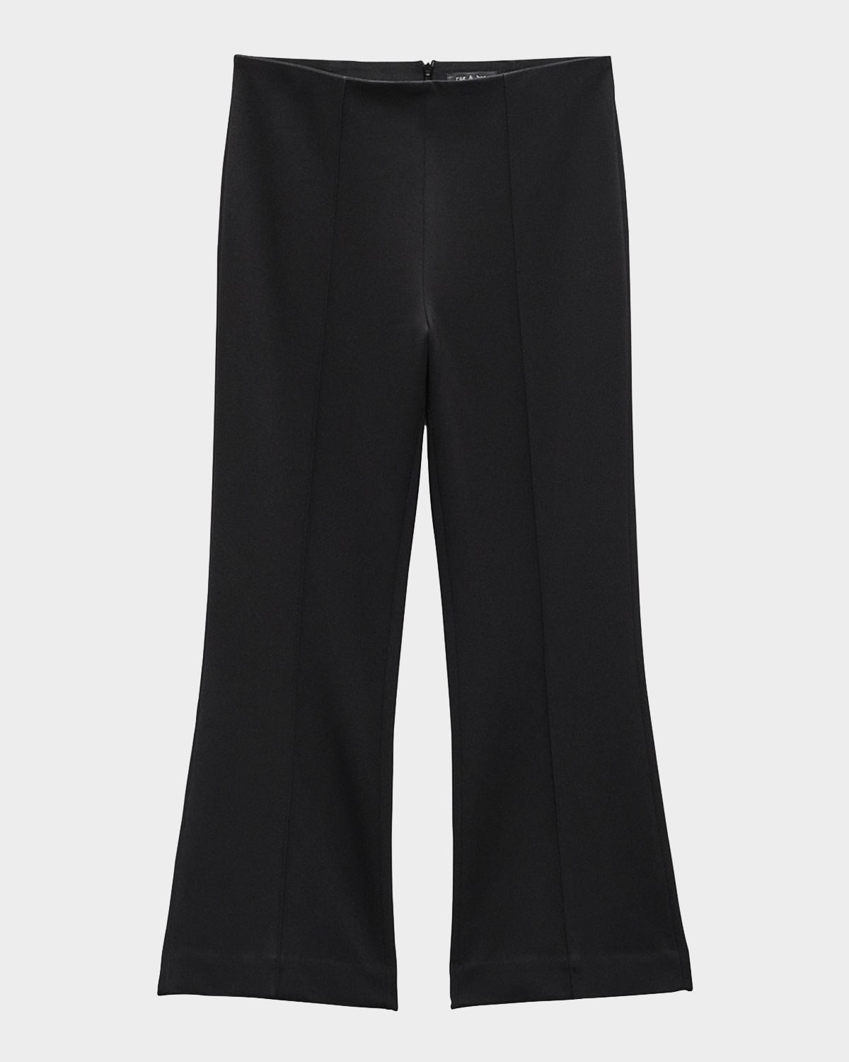 - Rag & Bone "Irina" kick-flare pants featuring a pintuck front - Mid-rise; sits high on the hip - Elastic waistband - Fitted through the hip and thigh - Cropped length - Invisible back zip - Viscose/nylon/polyamide/elastane - Machine wash cold - Imported