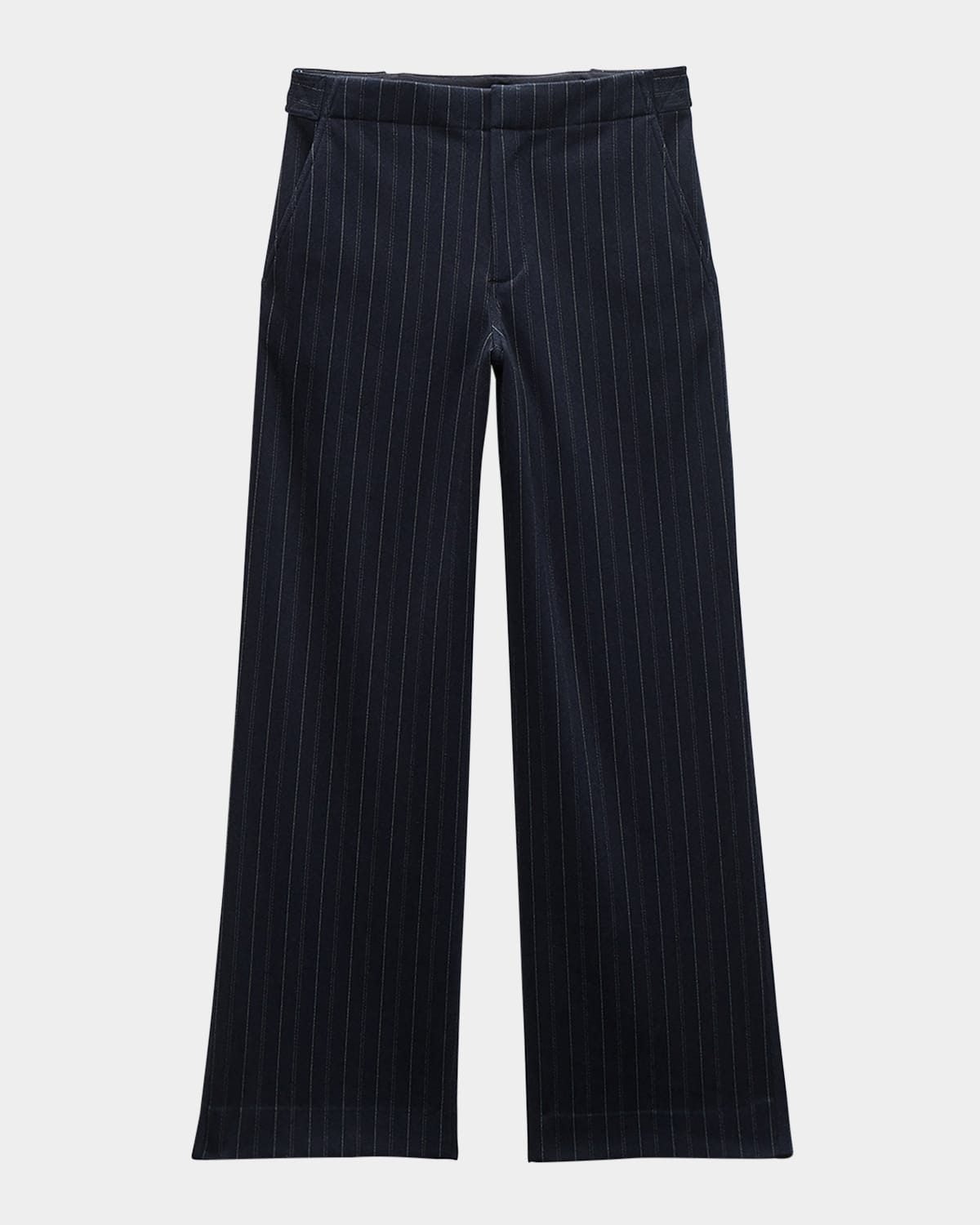 - An elevated classic, the "Irina" pants by Rag & Bone are crafted from ponte with a tailored fit. - Approx. 31" inseam; 11.5" rise - Mid-rise; sits high on the hip - Waist button tabs - Side pockets; back patch pocket - Wide legs - Full length - Hook/zip fly - Viscose/nylon/polyamide/elastane - Machine wash - Imported