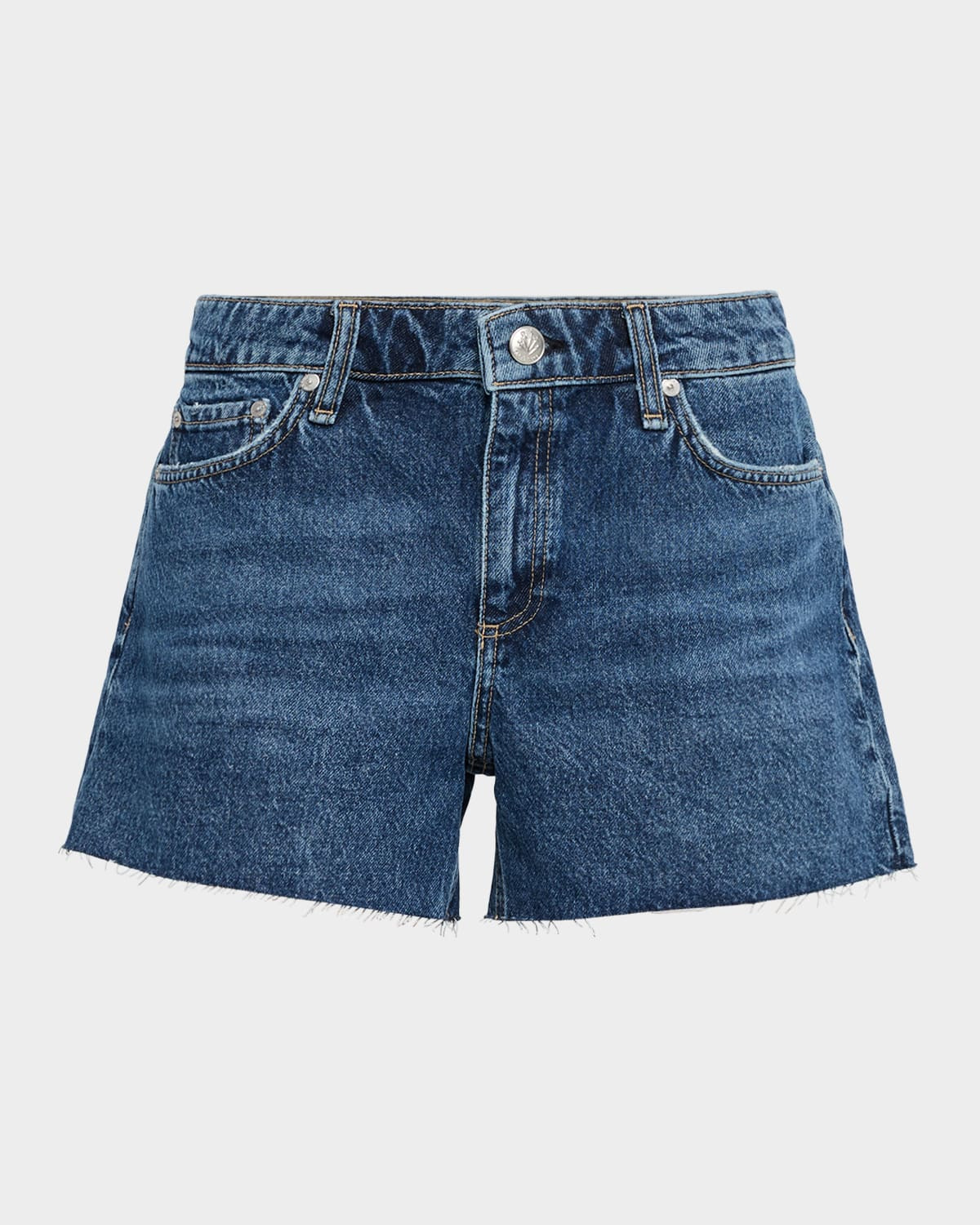- Rag & Bone "Kaia" cut-off denim shorts in medium-wash denim - Approx. 6.5" inseam - High rise - Five-pocket style - Relaxed fit - Button/zip fly; belt loops - Cotton - Imported