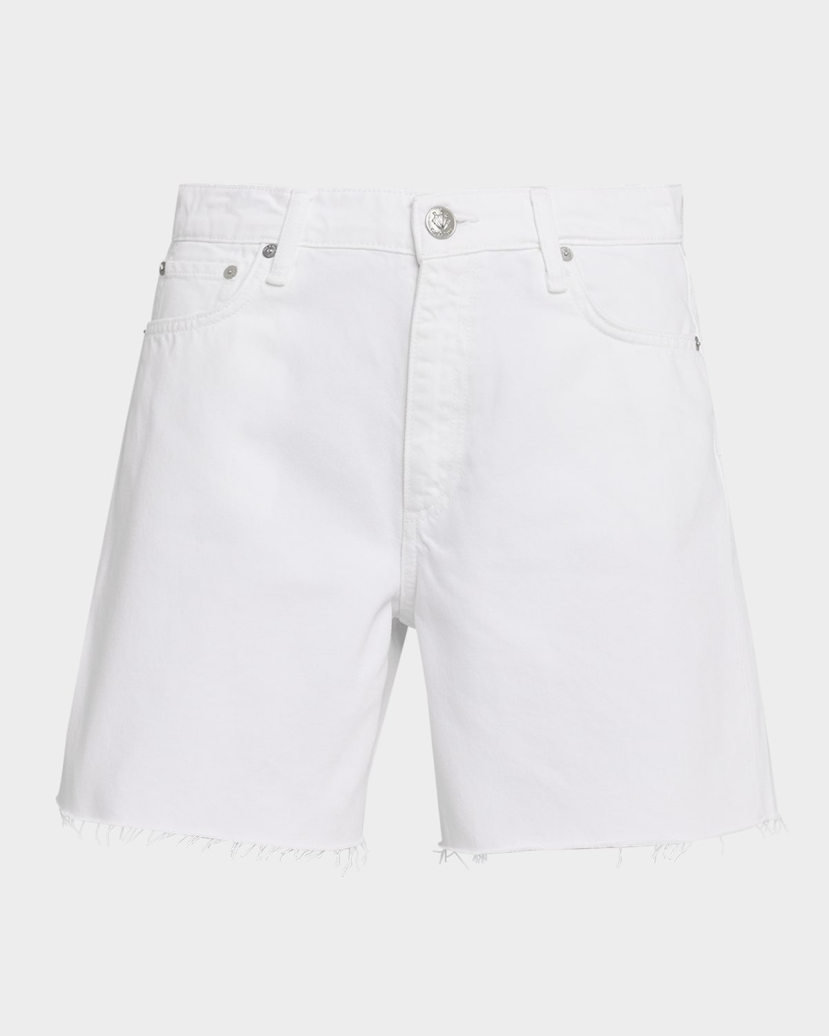 - Rag & Bone "Kaia" cut-off denim shorts in crisp white denim - Approx. 6.5" inseam - High rise - Five-pocket style - Relaxed fit - Button/zip fly; belt loops - Cotton - Imported
