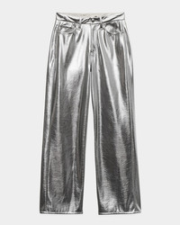 - Rag & Bone "Logan" jeans crafted in an on-trend metallic silver faux leather for a statement look. - Approx. 11.5" rise; 31.5" inseam - Mid-rise; sits high on the hip - Five-pocket style - Wide legs - Full length - Button/zip fly; belt loops - Polyester/polyurethane/viscose - Imported