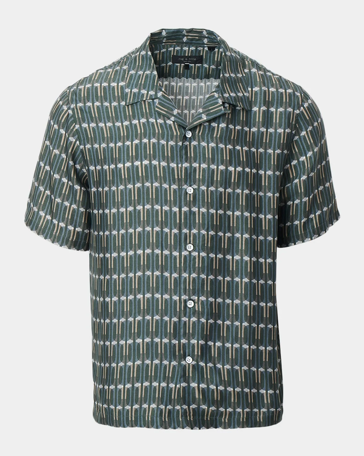 The "Avery" by Rag & Bone is a luxurious take on the camp shirt, crafted from & nbsp;lightweight viscose. Geometric pattern Notch collar Button front Classic fit Viscose Dry clean Imported