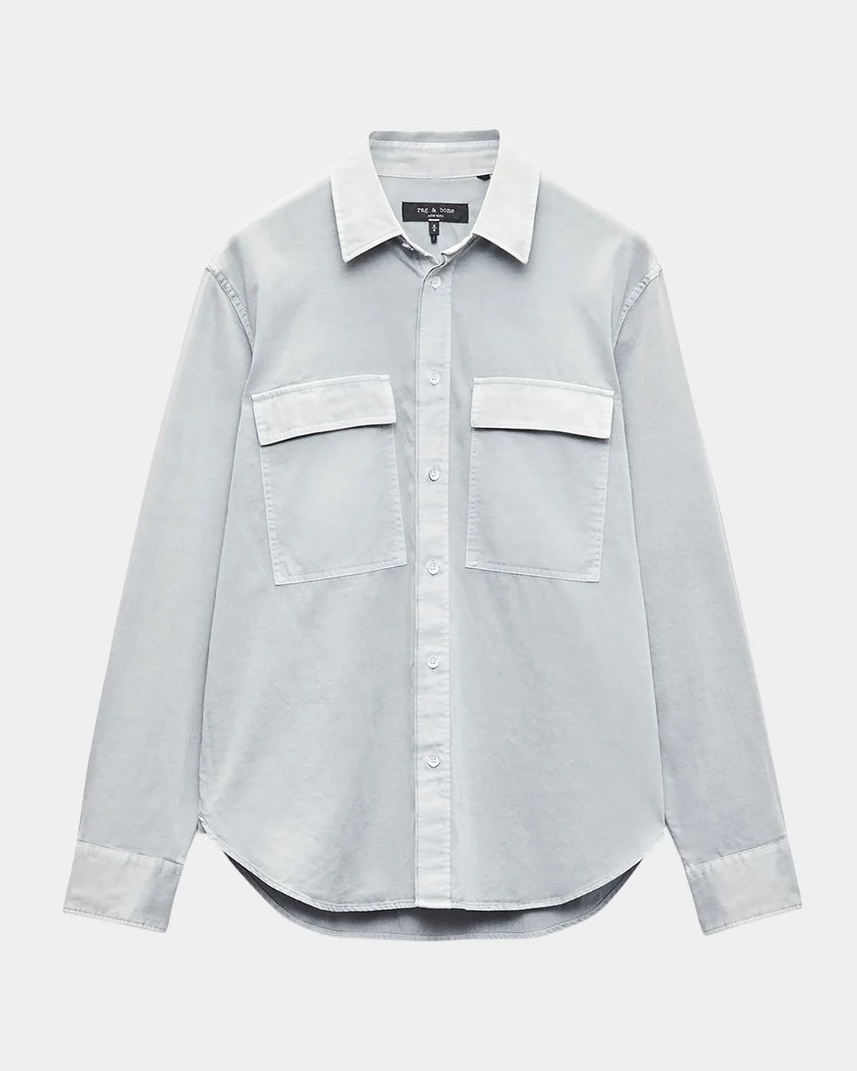 Rag amp; Bone "Finch" buttondown shirt in an overdyed cotton blend Point collar Button placket Chest flap pockets Long sleeves Button cuffs Curved hem Relaxed fit Cotton/lyocell Dry clean Imported