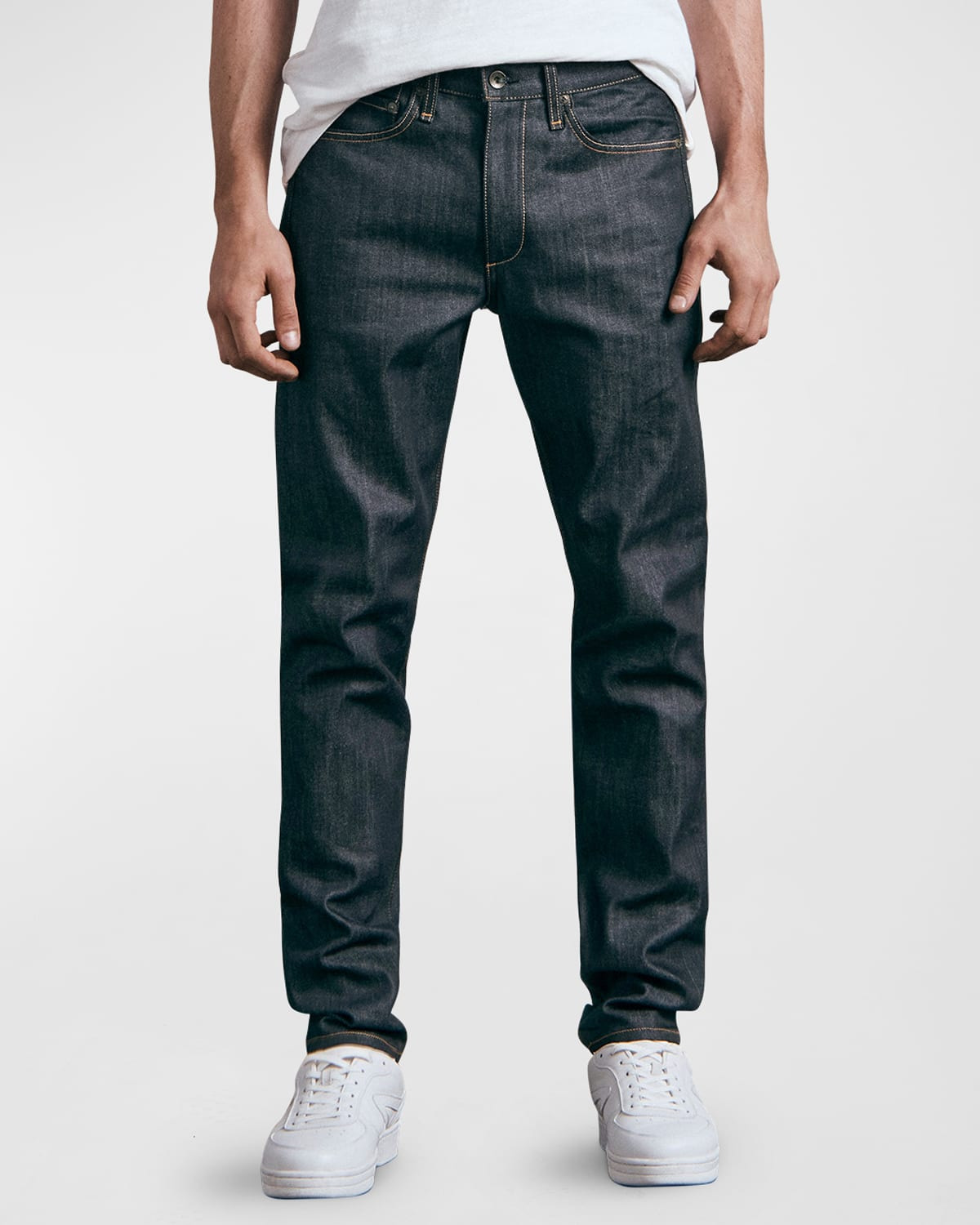 - Rag & Bone "Fit 2" jeans in authentic stretch denim - Regular rise - Five-pocket style - Full length - Regular fit - Button closure/zip fly; belt loops - Cotton/polyurethane - Made in USA from imported materials - Model is 6'1"/185cm. - Size Note: Item runs small, consider ordering a size up.
