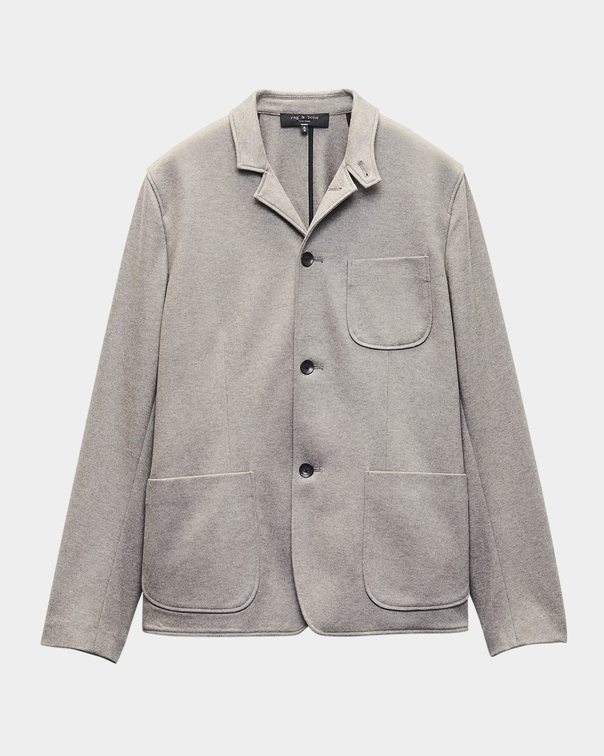 - Rag & Bone "Prospect" casual blazer crafted from piece-dyed Japanese wool and finished with metal buttons - Notch lapels - Throat latch for versatile styling - Three front patch pockets - Button front - Long sleeves - Wool/nylon/polyamide - Dry clean - Imported