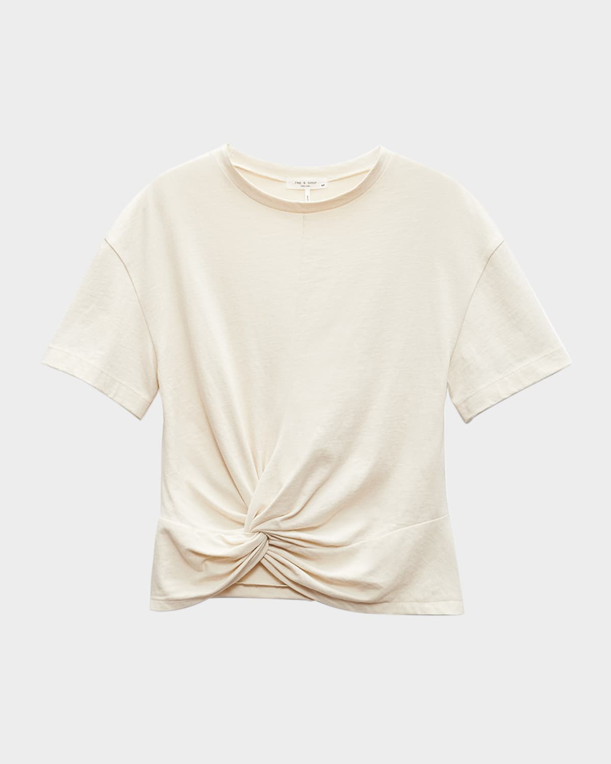 - Rag & Bone "Mica" twist hem cotton tee - Crew neckline - Short sleeves - Draped fit - Hem sits at the hip - Pullover style - Cotton - Unlined - Dry clean or machine wash - Imported
