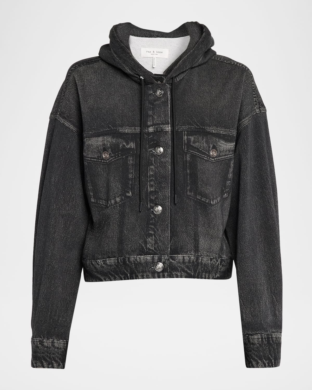 - Rag & Bone "Miramar" digitally-printed denim hoodie crafted from a super-soft cotton terry - Hooded drawstring neckline - Dropped shoulders - Long sleeves - Relaxed fit - Button-front - Cotton - Machine wash cold inside out - Imported