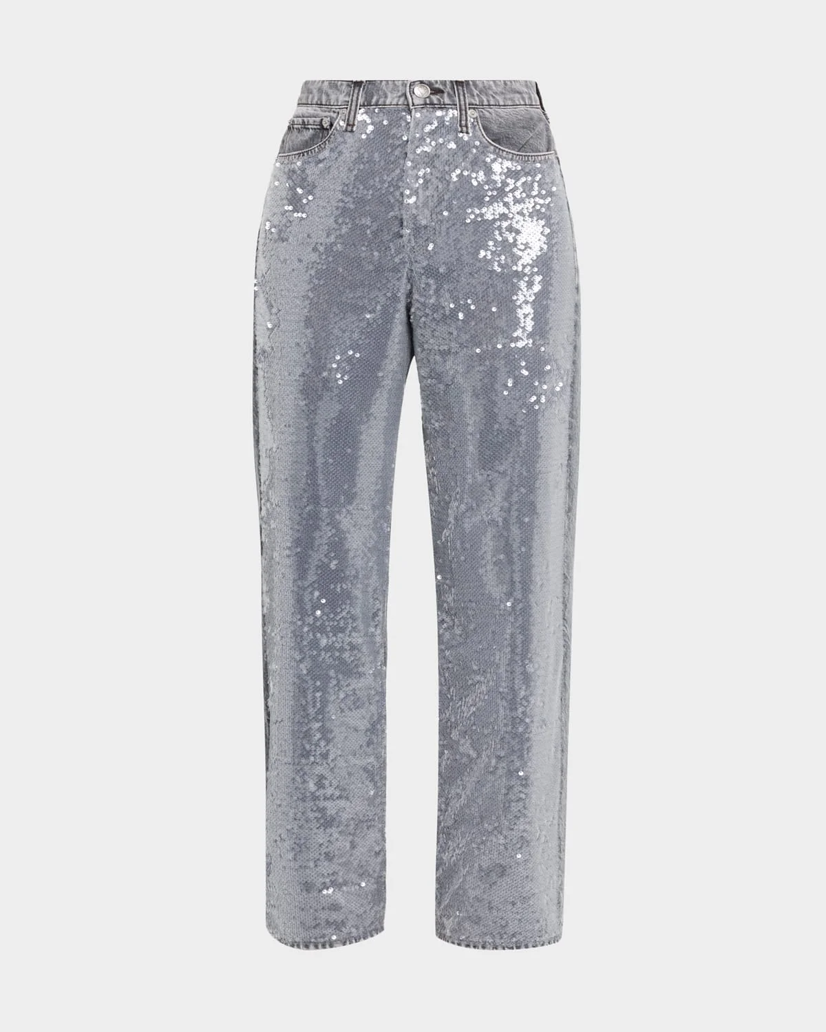 Rag amp; Bone "Shea" straightleg jeans adorned with sequin embellishment in rigid denim Approx. 11.75" rise; 32" inseam High rise Fivepocket style Relaxed fit Full length Button/zip fly; belt loops Cotton Hand wash only Imported