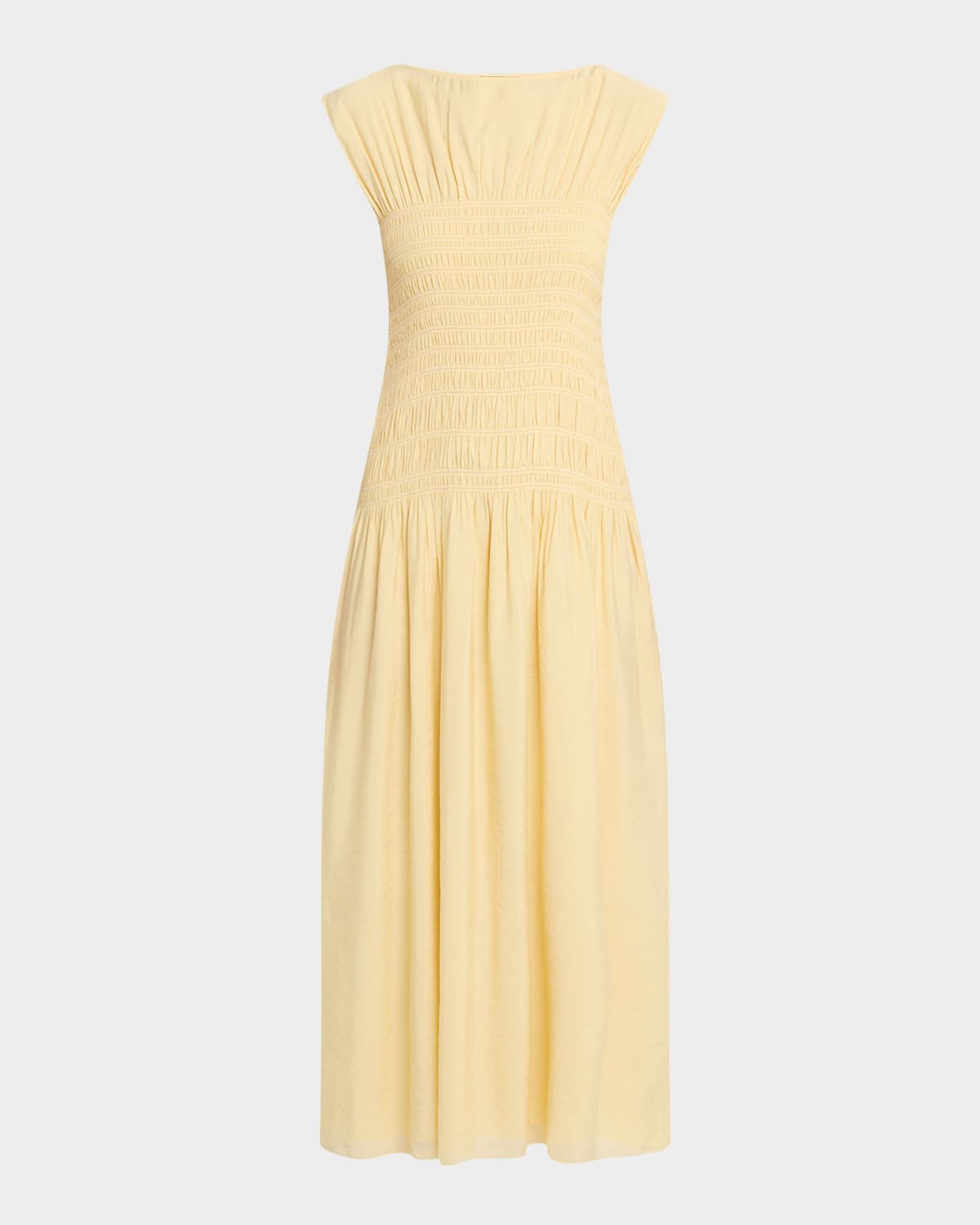 - Rag & Bone "Skye" midi dress featuring a smocked bodice - Wide high neckline - Cap sleeves - Drop-waist silhouette - Hem falls below the knee - Slipover style - Proviscose® rayon/nylon/polyamide - Lining: Rayon - Machine wash - Imported