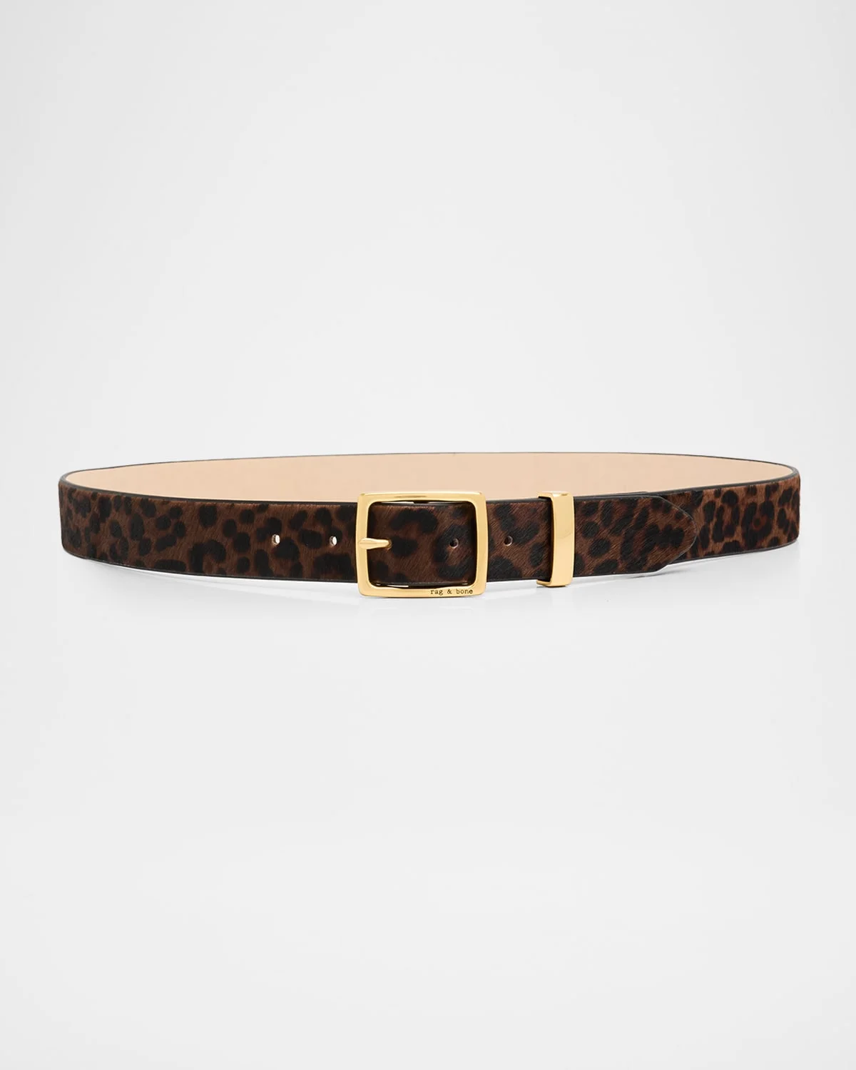 Rag amp; Bone menswearinspired belt crafted from leopardprint calf hair (Turkey). Approx. 1.18"W Goldtone metal keeper Adjustable fastening Buckle closure Professional cleaning recommended Imported