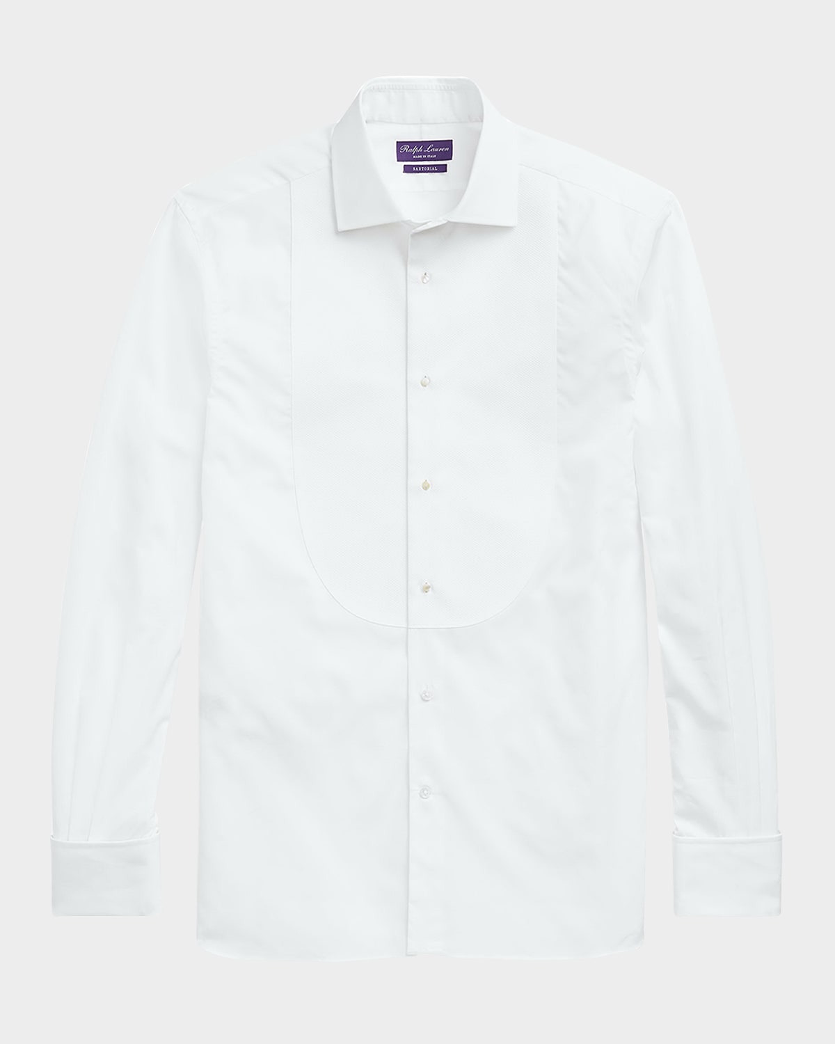 - Ralph Lauren "Aston" dress shirt featuring pique bib - Spread collar; button placket - Long sleeves - French cuffs - Yoked back shoulders - Shirttail hem - Classic fit - Cotton - Made in Italy - Model is 6'1"/185cm.
