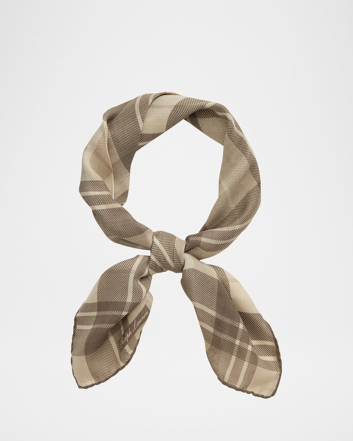 - Ralph Lauren Purple Label plaid-printed neckerchief in a soft and lustrous blend of cashmere and silk - Approx. 15.75"L x 2.76"W - May be styled multiple ways - Cashmere/silk - Made in Italy
