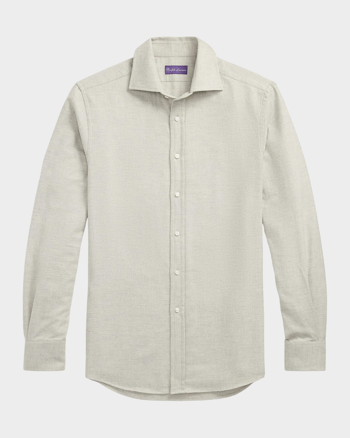 - Ralph Lauren Purple Label herringbone shirt in brushed cotton flannel to offer a luxuriously soft texture - Approx. 31.5"L from shoulder to hem - Custom mother-of-pearl buttons - Spread collar - Signature collar stays - Long sleeves; approx. 35.5"L - Round barrel cuffs - Pleated back yoke ensures smooth, contoured shoulders - Curved hem - Cotton - Unlined - Machine wash - Made in Italy