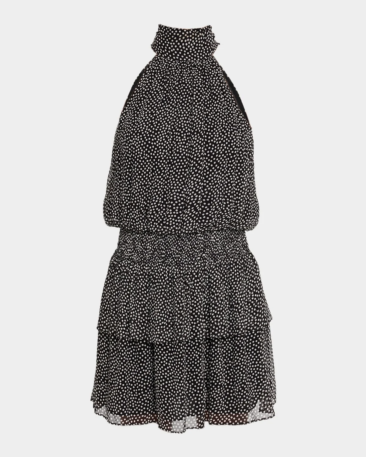 Patterned with classic polka dots, the "Luana" dress by Ramy Brook ties behind the neck, creating an oversized bow & nbsp; Approx. 33"L from shoulder to hem Halter neckline Sleeveless Smocked waistband A-line skirt Slipover style Silk Lining: Polyester Dry clean Imported
