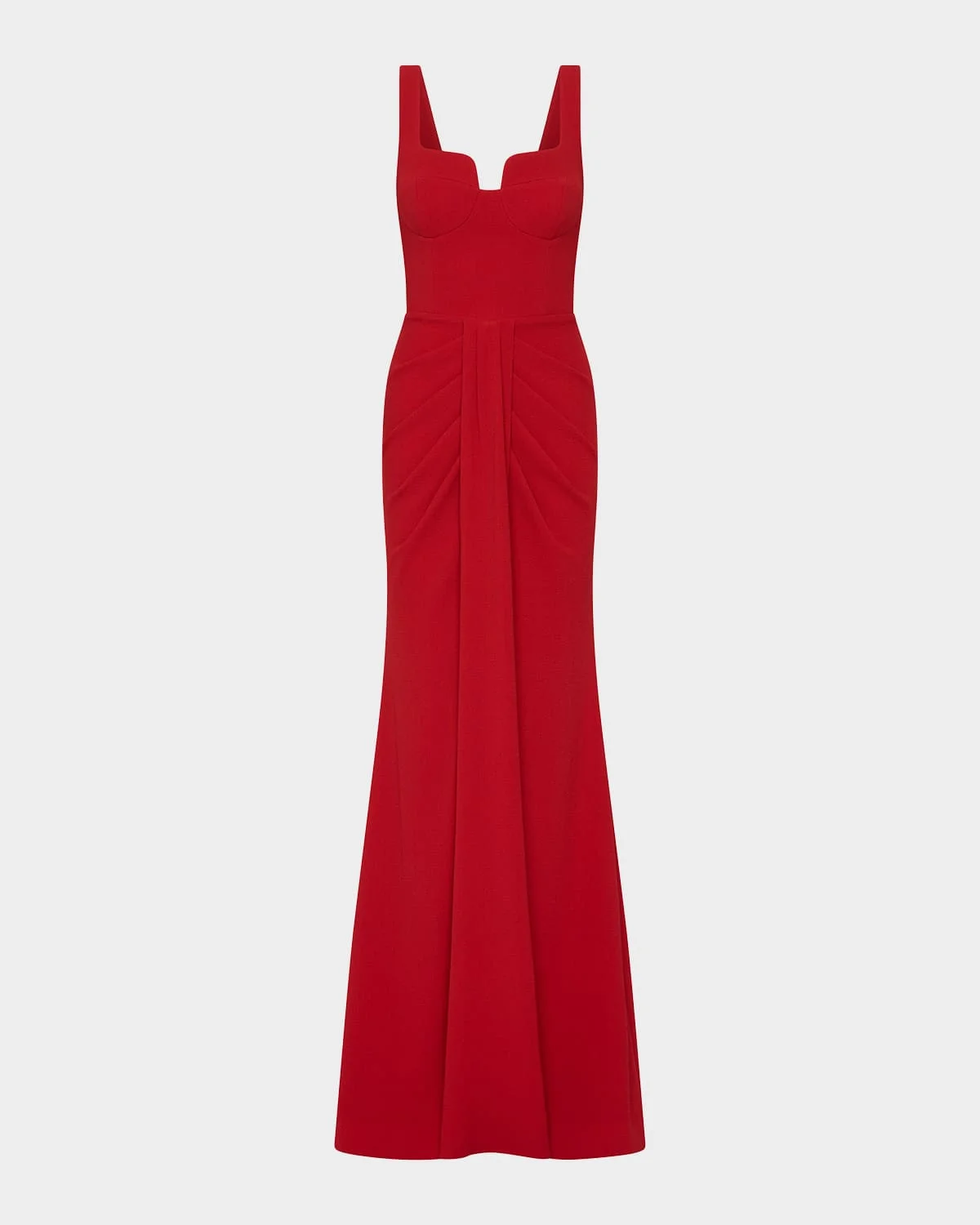 Tailored from bonded crepe, this REBECCA VALLANCE "Zarya" gown gathers with front pleats around the hips and a center front drape Sweetheart neckline Sleeveless Back godet inset Floorsweeping hem Mermaid silhouette Invisible back zipper Polyester/elastane Lining: Elastane/polyester Dry clean Imported