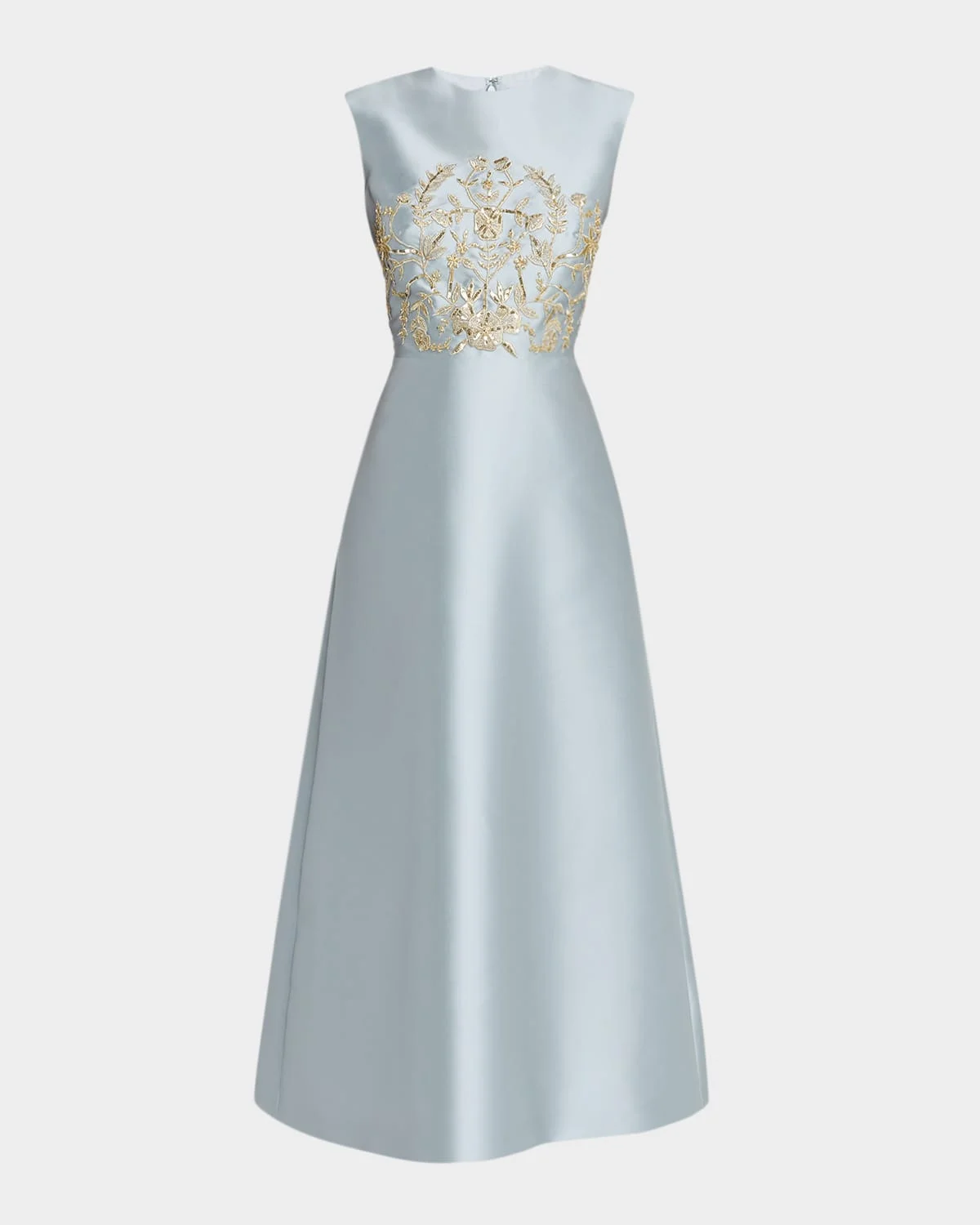 From the Petals, Spice, and Whispers of Plumage Collection, this timeless cocktail dress by Reem Acra is crafted of satin pique, detailed with contrasting embroidery and & nbsp;shimmering sequins The Petals, Spice, and Whispers of Plumage Collection is a dreamlike journey through a Turkish bazaar, where florals bloom, spices swirl, silks shimmer, and feathers whisper of flight. Approx. 54" from shoulder to hem Jewel neckline Sleeveless Hem falls below the knee A-line silhouette Concealed back zip closure Polyester/Silk Dry clean Made in USA of Italian fabric SIZE & FITModel measurements: 5 & apos;10" tallModel is wearing a US size 4/Small