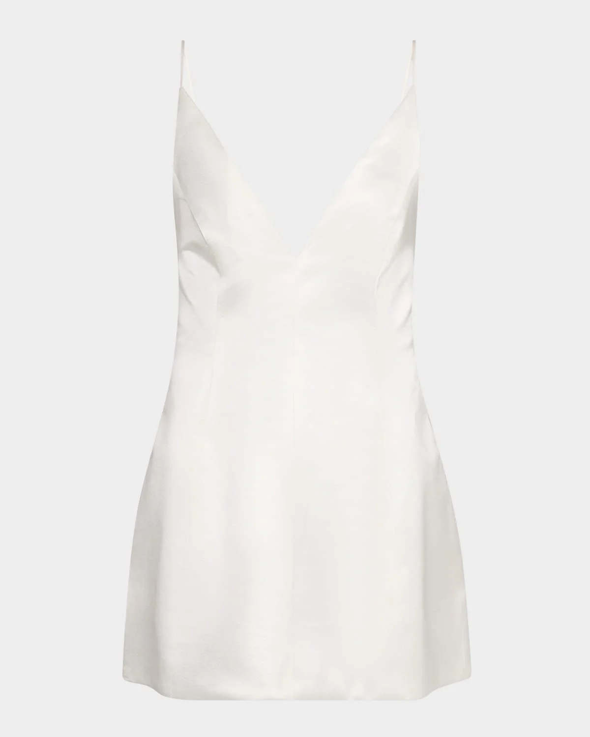 Retrofete "Giavanna" satin mini dress featuring a plugning V neckline Adjustable spaghetti straps Aline silhouette Hem falls above the knee Invisible back zip Acetate/polyester Dry clean Imported