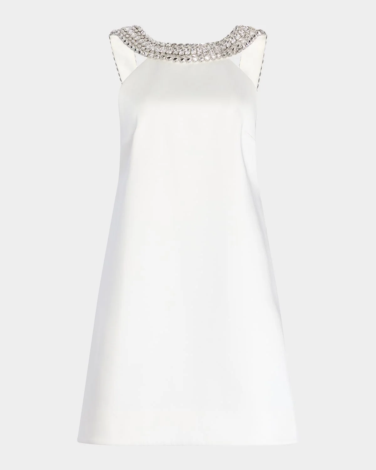 Retrofete "Kenai" luxe satin mini dress embellished with a crystal collar Halter neckline Sleeveless Shift silhouette Hem falls above the knee Center back zip Acetate/polyester/nylon/polyamide Dry clean Imported