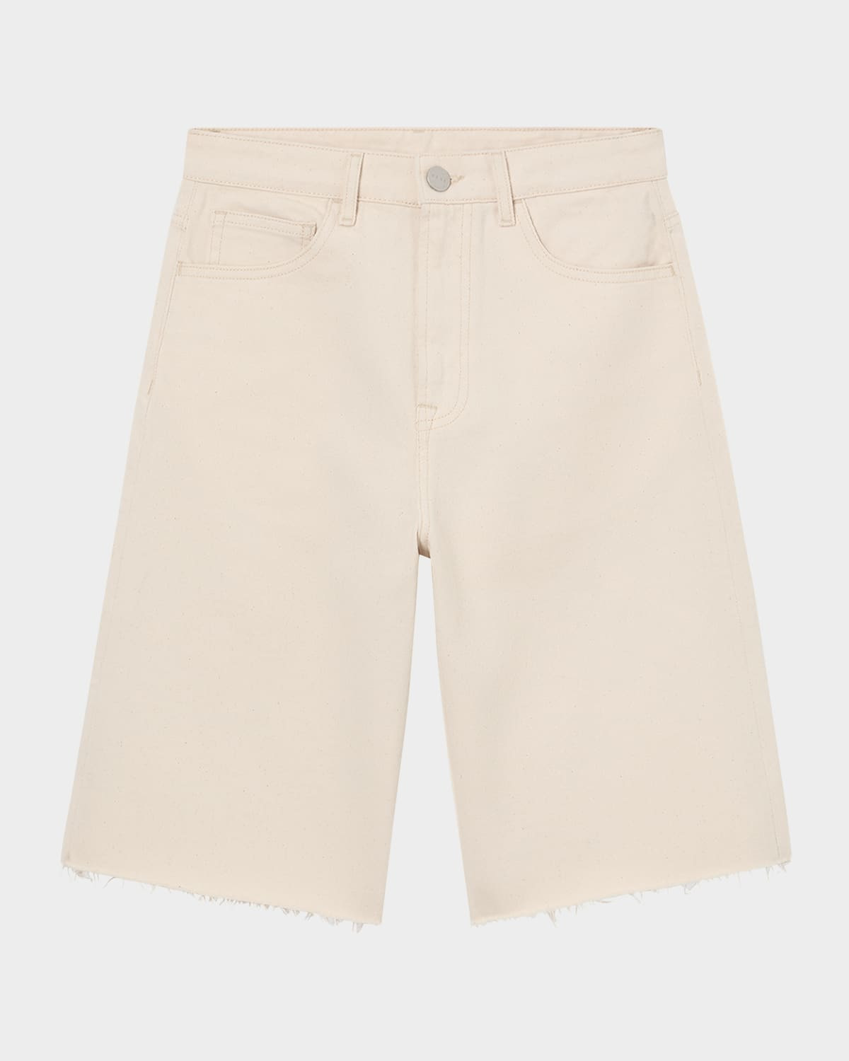 - Effortlessly casual and timeless, these denim shorts embody a laid back summer vibe with rugged detailing. A relaxed design, with baggy fit and a cut off bottom raw hemline for a lived in look. - Les Coyotes De Paris denim shorts featuring a raw hem - Mid-rise; sits high on the hip - Five-pocket style - Baggy fit - Knee-length - Button/zip fly; belt loops - Cotton - Hand wash, machine wash, or dry clean - Imported
