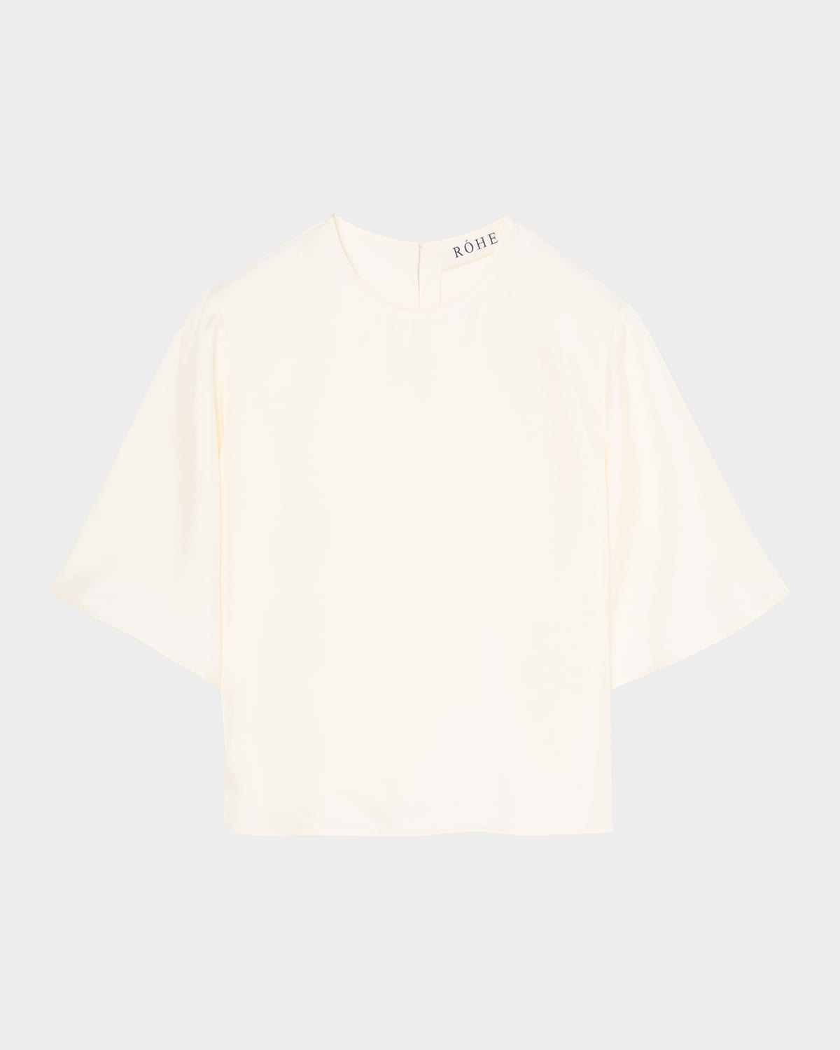 - Rohe luxurious silk top - Crew neckline - Elbow-length sleeves - Loose fit - Hem falls to the hip - Back button closure - Silk - Unlined - Dry clean only - Made in Italy