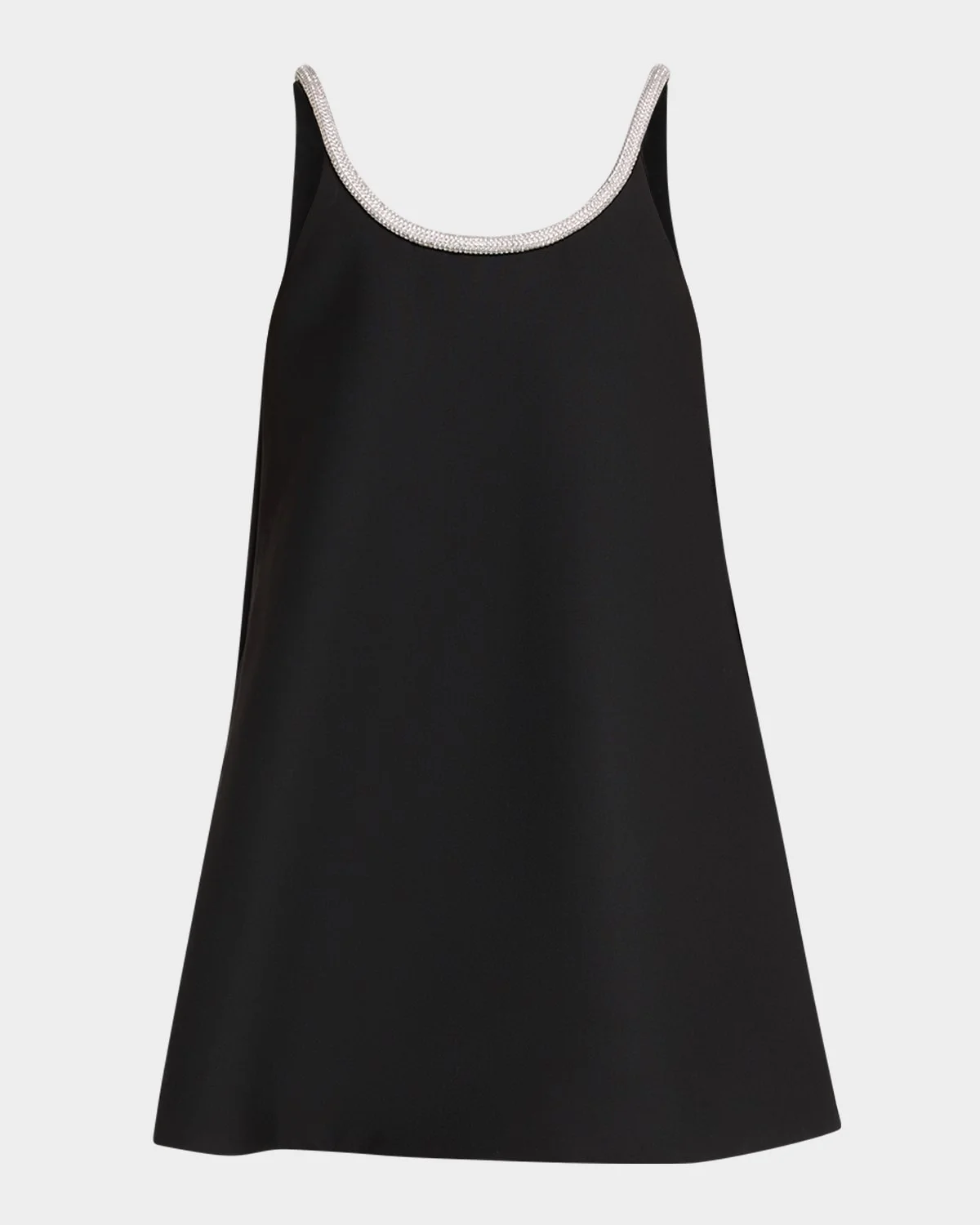 Embellished with shimmering crystal trim, this Rohe mini dress is crafted from bonded wool for a sleek, structured silhouette. Scoop neckline Sleeveless Aline silhouette Hem falls above the knee Side zip Wool/polyester/viscose Made in Italy