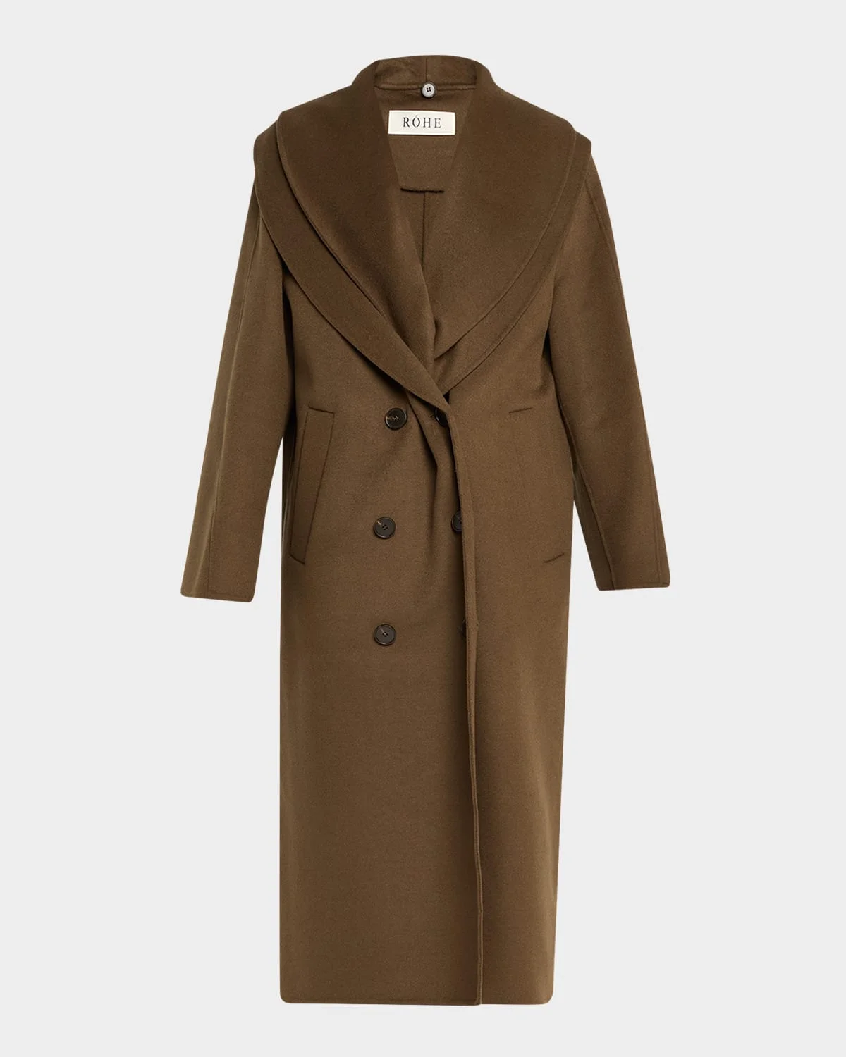 Crafted from double-face wool, this Rohe coat is adorned with a detachable scarf & nbsp;for ample warmth and comfort. Shawl collar & nbsp; Double-breasted front & nbsp; Long sleeves Side pockets Classic fit Full length Button-front & nbsp; Wool Hand wash or dry clean Made in Italy