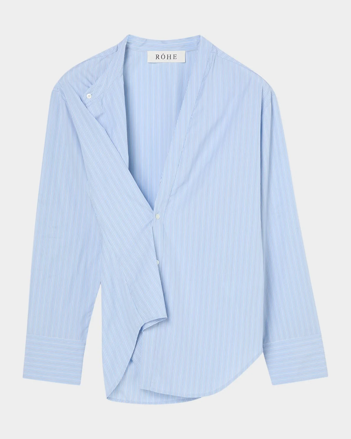 - Rohe striped cotton poplin shirt enhanced with an asymmetric button-front - Stand collar; V neckline - Long sleeves with button cuffs - Relaxed fit - Asymmetric hem - Cotton - Hand wash or dry clean - Imported