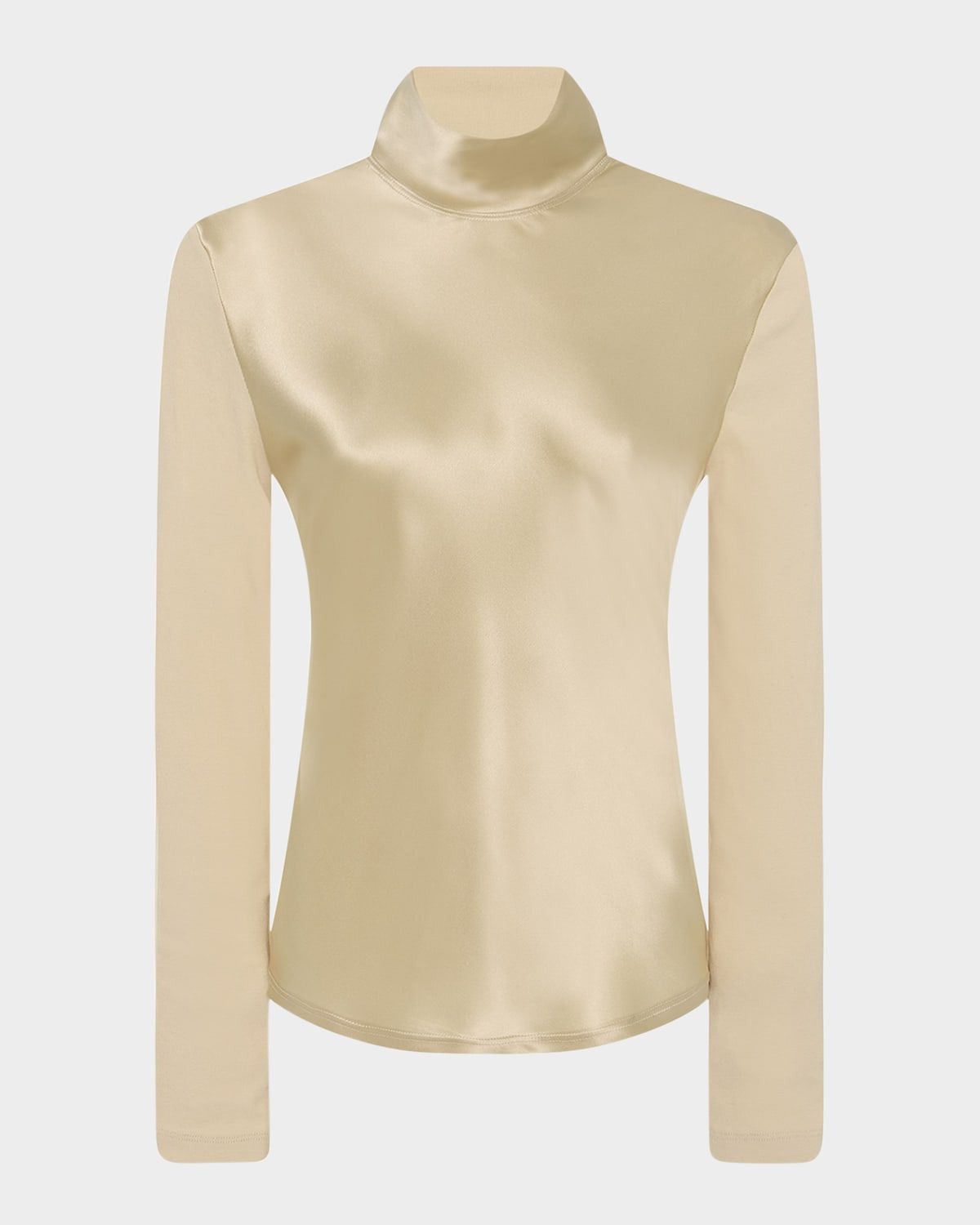 - Rosetta Getty satin turtleneck top finished with knit sleeves for a modern take on a classic silhouette. - Long sleeves - Classic fit - Hem sits at the hip - Pullover style - Cotton - Made in USA from imported materials