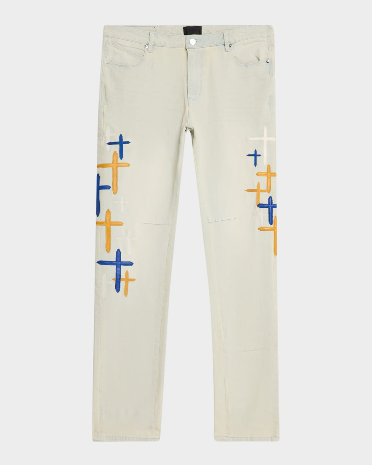 - RTA "Bryant" embroidered jeans in faded stretch-denim - Regular rise - Five-pocket style - Fitted through skinny legs - Button/zip fly; belt loops - Cotton/spandex - Hand wash - Imported
