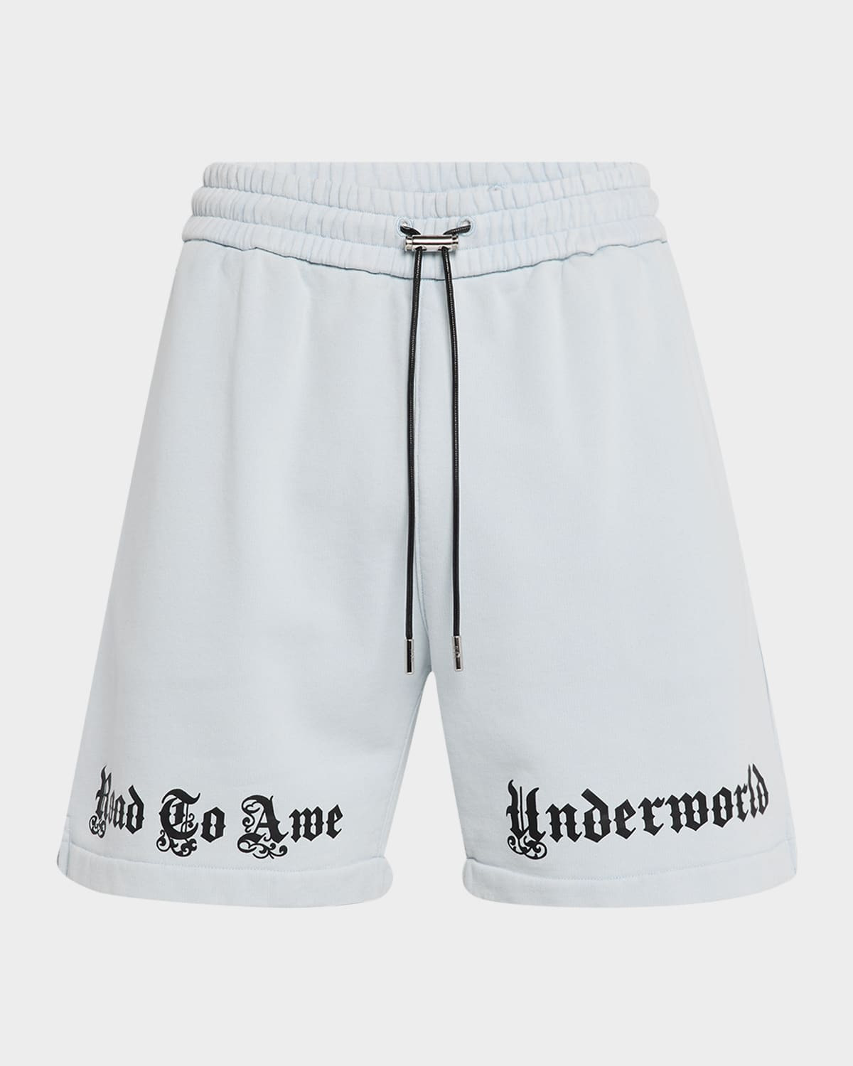 - RTA "Clyde" sweat shorts - "Road to Awe Underworld" written in an Old English font along the hem - Elasticized waist with toggle drawstring - In-seam side pockets - Classic fit - Pull-on style - Cotton - Hand wash - Imported