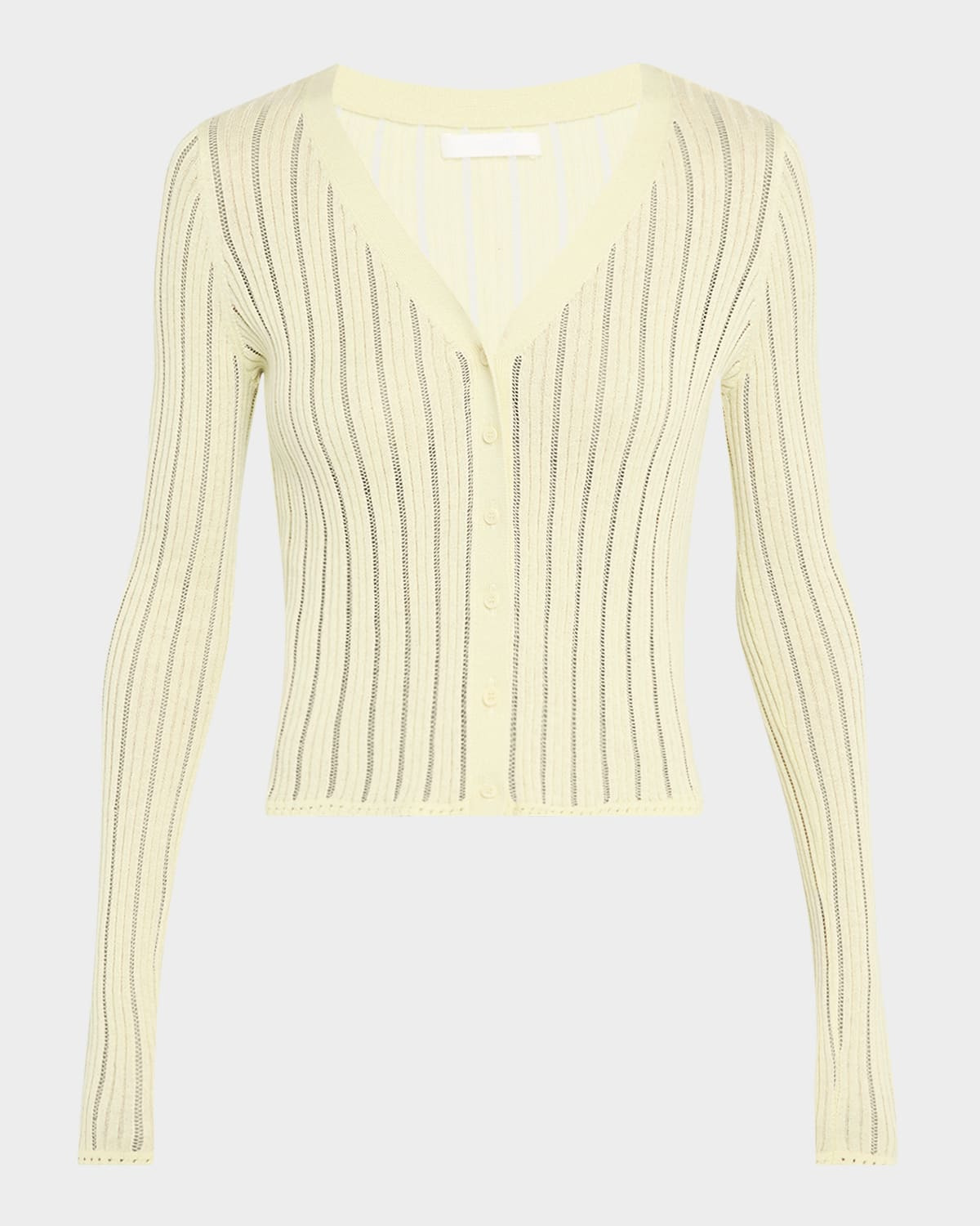 Sablyn "Vinni" knit cardigan in a comfortable yet refined silhouette V neckline Long sleeves Slim fit Hip length Button front closure Cotton/silk/cashmere Dry clean Imported