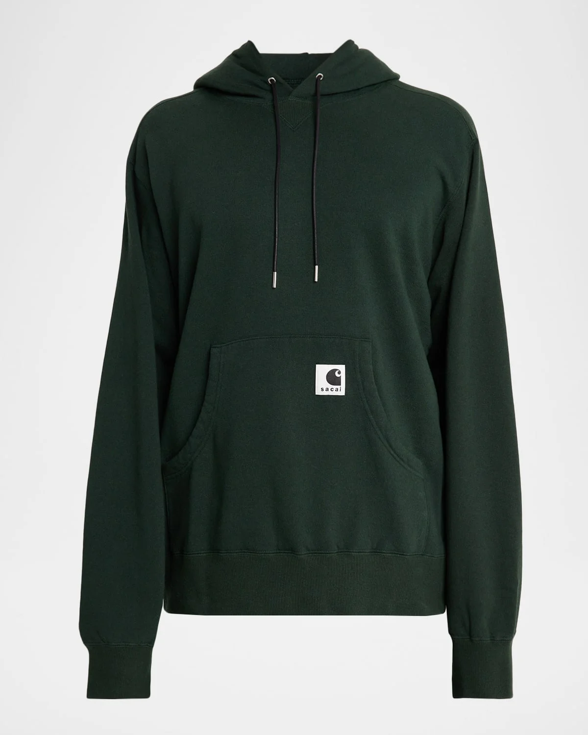 SACAI x CARHARTT WIP jersey hoodie is made from a heavyweight cotton jersey fabric with a soft, brushed cotton pile lining. Garmentwashed for a unique, wornin appearance Hooded drawstring neckline Kangaroo pocket with cobranded woven label Long sleeves Ribbed cuffs and hem Pullover style Cotton/polyurethane Dry clean Made in Japan