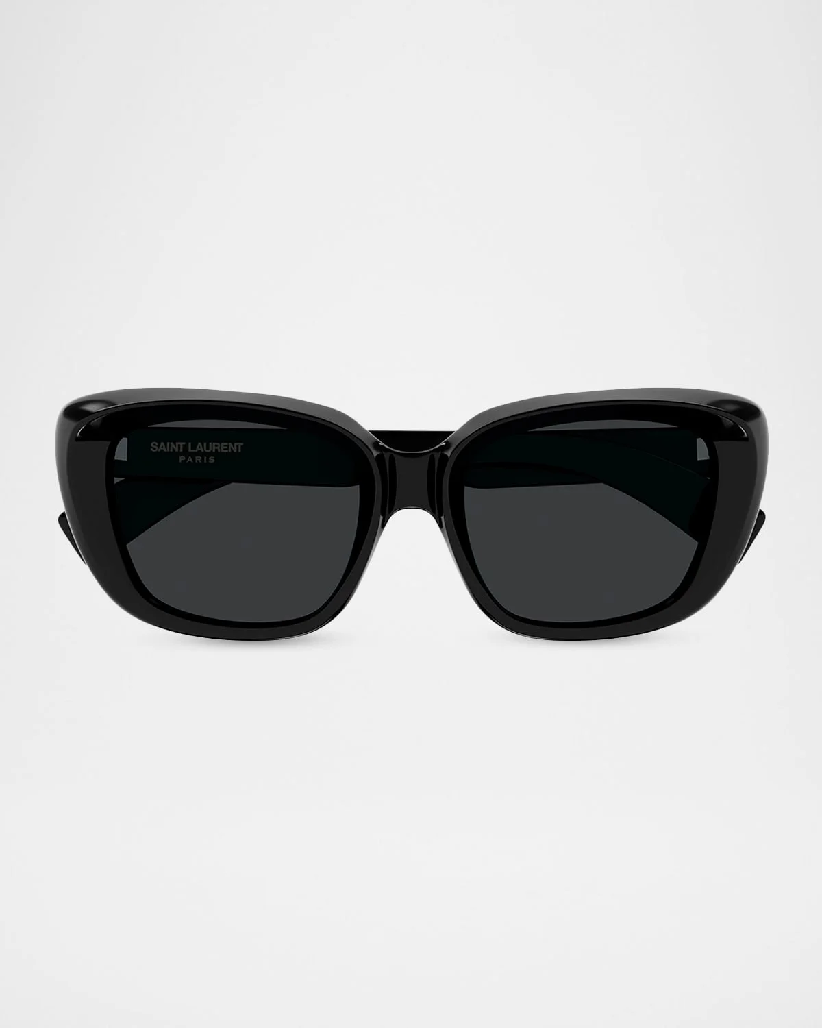 Saint Laurent "SL 857-001" sunglasses & nbsp;feature an oversized, rounded square silhouette with a thick, sculptural acetate profile. Eye/bridge/temple (in mm): 53-19-145 Monochromatic lenses Saddle nose bridge Engraved logo temples Acetate 100% UVA/UVB protection Made in Italy