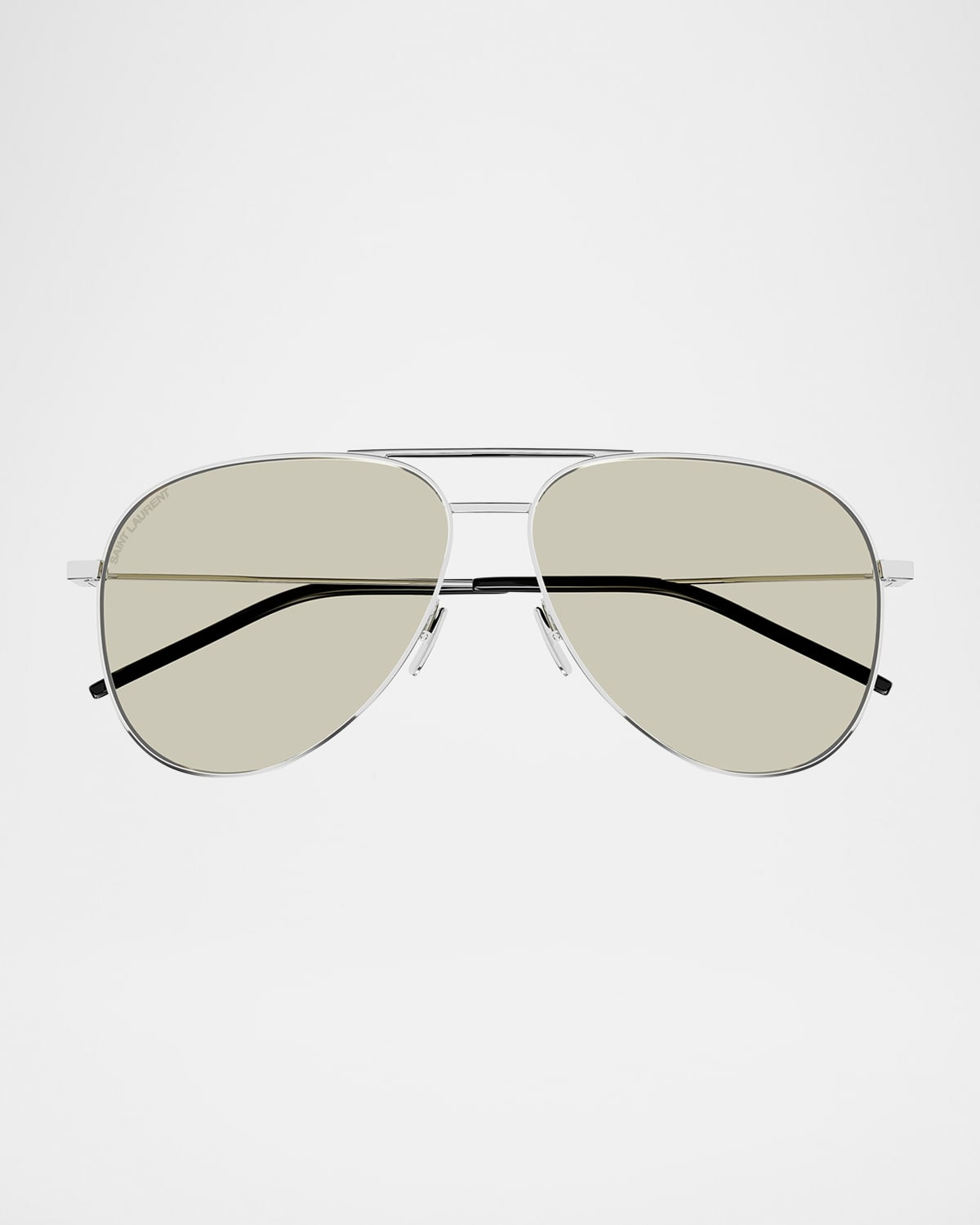 - Saint Laurent unisex aviator sunglasses in sleek metal - Eye/bridge/temple (in mm): 59-14-145 - Solid lenses - Adjustable nose pads - Double brow bridge - Thin, tapered arms - Capped earpieces - 100% UVA/UVB protection - Made in Italy - Proposition 65 warning for California residents